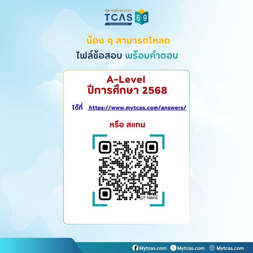 EZ Webmaster August 18, 2025 EZ Webmaster August 18, 2025 แจกฟรี! ไฟล์ข้อสอบ A-Level ปีการศึกษา 2568 พร้อมคำตอบ Mytcas.com แจกฟรี! ไฟล์ข้อสอบ A-Level ปีการศึกษา 2568 พร้อมคำตอบ น้อง ๆ ที่เตรียมตัวสอบ A-Level หรืออยากลองทำข้อสอบเพื่อเพิ่มความมั่นใจ สามารถดาวน์โหลดทั้ง16 วิชาได้แล้ววันนี้ที่: https://www.mytcas.com/answers/ หรือสแกน QR Code ในรูปภาพได้เลย