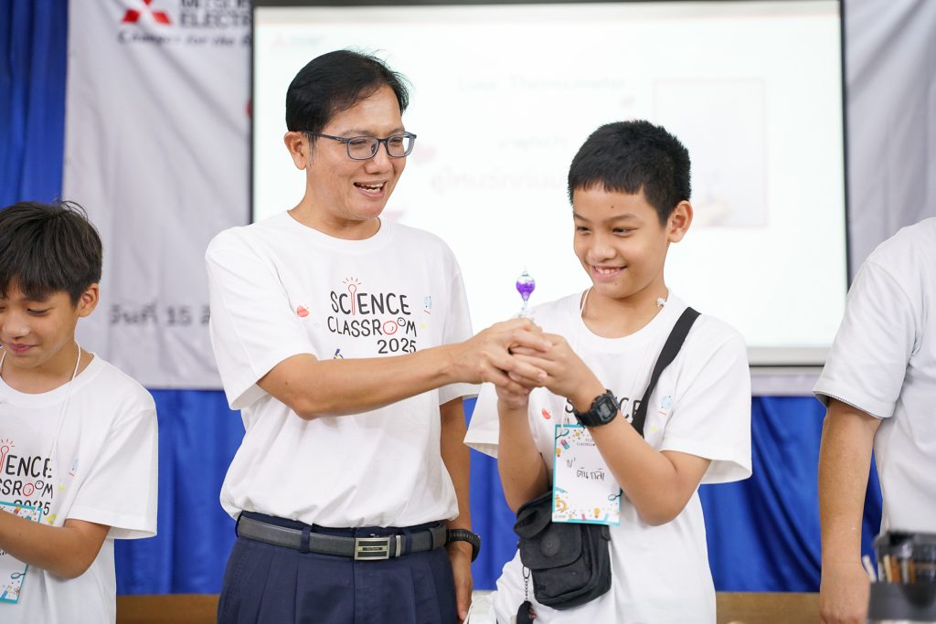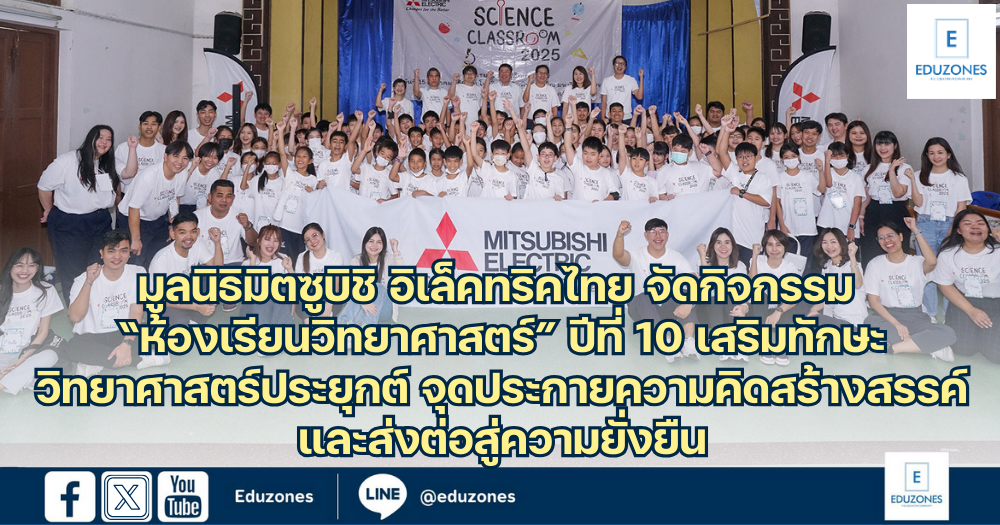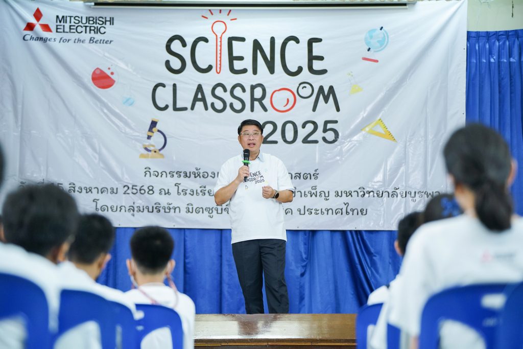 EZ Webmaster August 25, 2025 EZ Webmaster August 25, 2025 มูลนิธิมิตซูบิชิ อิเล็คทริคไทย จัดกิจกรรม “ห้องเรียนวิทยาศาสตร์” ปีที่ 10 เสริมทักษะวิทยาศาสตร์ประยุกต์ จุดประกายความคิดสร้างสรรค์ และส่งต่อสู่ความยั่งยืน มูลนิธิมิตซูบิชิ อิเล็คทริคไทย ร่วมกับกลุ่มบริษัท Mitsubishi Electric ในประเทศไทย จัดกิจกรรม “ห้องเรียนวิทยาศาสตร์ (Science Classroom)” ต่อเนื่องเป็นปีที่ 10 เพื่อถ่ายทอดองค์ความรู้ด้านวิทยาศาสตร์เชิงประยุกต์ และสร้างแรงบันดาลใจแก่เยาวชนไทย ณ โรงเรียนสาธิตพิบูลบำเพ็ญ มหาวิทยาลัยบูรพา จังหวัดชลบุรี กิจกรรม “ห้องเรียนวิทยาศาสตร์” ประจำปี 2568 มีเป้าหมายเพื่อส่งเสริมทักษะ เติมเต็มองค์ความรู้ด้านวิทยาศาสตร์ เตรียมความพร้อมให้กับเยาวชนให้ก้าวสู่การเป็นผู้สร้างสรรค์ในโลกอนาคตที่ขับเคลื่อนด้วยเทคโนโลยี และนวัตกรรมอย่างยั่งยืน โดยปีนี้มีนักเรียนระดับชั้นประถมศึกษาปีที่ 5 และ 6 จากโรงเรียนสาธิตพิบูลบำเพ็ญ มหาวิทยาลัยบูรพา เข้าร่วมกิจกรรมกว่า 70 คน ภายใต้ความร่วมมือจาก บริษัท สยามคอมเพรสเซอร์อุตสาหกรรม จำกัด และ บริษัท มิตซูบิชิ อีเล็คทริค คอนซูมเมอร์ โปรดักส์ (ประเทศไทย) จำกัด ในฐานะเจ้าภาพหลัก “ห้องเรียนวิทยาศาสตร์” เป็นกิจกรรมที่ออกแบบให้เป็นการเรียนรู้แบบลงมือทำ ผสานหลักการทางวิทยาศาสตร์เข้ากับการประยุกต์ใช้อย่างสร้างสรรค์ เพื่อให้เยาวชนได้สัมผัสประสบการณ์จริง ผ่านการทดลองทั้งภาคทฤษฎีและปฏิบัติ ที่อยู่ภายนอกห้องเรียน โดยน้อง ๆ นักเรียนได้ร่วมกิจกรรมกันอย่างสนุกสนาน อาทิ การถ่ายเทความร้อน (Heat Transfer): เรียนรู้หลักการถ่ายเทความร้อนผ่านวัสดุที่แตกต่างกัน Love Thermometer: ทำความเข้าใจการถ่ายเทความร้อนผ่านตัวกลาง กังหันลมจิ๋ว: เรียนรู้หลักการทำงานของพลังงานความร้อนที่เปลี่ยนเป็นพลังงานกล Heat Pump: ศึกษาหลักการความสัมพันธ์ระหว่างความดันและร้อน ไอศกรีมมือหมุน: โดยนำหลักการทางวิทยาศาสตร์มาใช้ในการทำไอศกรีม โดยอาศัยหลักการลดจุดเยือกแข็งของน้ำด้วยเกลือ เพื่อสร้างอุณหภูมิที่ต่ำมากพอที่จะทำให้ส่วนผสมไอศกรีมแข็งตัวอย่างรวดเร็ว การประดิษฐ์รถจิ๋วพลังงานโซล่าเซลล์: การเรียนรู้วิทยาศาสตร์เชิงปฏิบัติ ที่ให้เด็ก ๆ ได้ประกอบรถโดยใช้หลักการเปลี่ยนพลังงานแสงอาทิตย์เป็นพลังงานกล เพื่อให้รถเคลื่อนที่ได้ นายขจรศักดิ์ สุวัฒน์ธนากร กรรมการผู้จัดการบริษัท สยามคอมเพรสเซอร์อุตสาหกรรม จำกัด กล่าวว่า “ในฐานะเจ้าภาพร่วมของกิจกรรม ‘ห้องเรียนวิทยาศาสตร์’ เรามีความภาคภูมิใจที่ได้เป็นส่วนหนึ่งในการเปิดโอกาสให้เยาวชนได้เรียนรู้วิทยาศาสตร์อย่างใกล้ชิดและสนุ