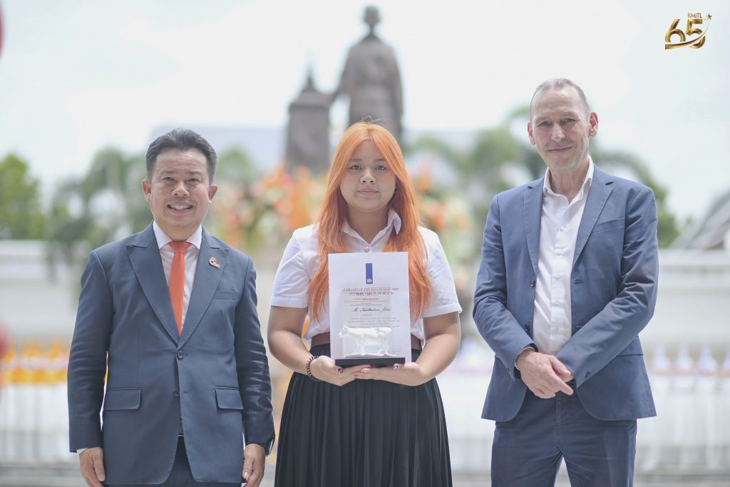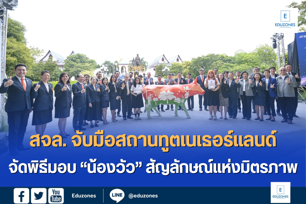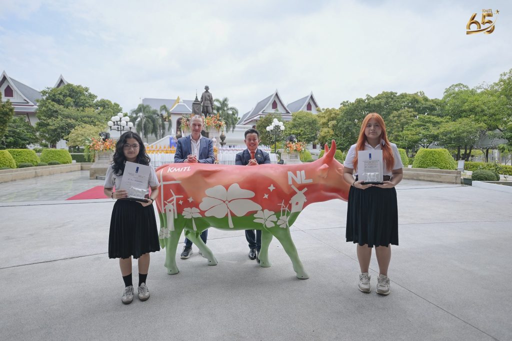 EZ Webmaster September 5, 2025 EZ Webmaster September 5, 2025 สจล. จับมือสถานทูตเนเธอร์แลนด์ จัดพิธีมอบ “น้องวัว” สัญลักษณ์แห่งมิตรภาพ มุ่งสู่ความร่วมมือด้านเกษตร นวัตกรรม และความยั่งยืนในอนาคต สจล. จับมือสถานทูตเนเธอร์แลนด์ จัดพิธีมอบ “น้องวัว” สัญลักษณ์แห่งมิตรภาพ มุ่งสู่ความร่วมมือด้านเกษตร นวัตกรรม และความยั่งยืนในอนาคต สถาบันเทคโนโลยีพระจอมเกล้าเจ้าคุณทหารลาดกระบัง (สจล.) ร่วมกับสถานเอกอัครราชทูตเนเธอร์แลนด์ประจำประเทศไทย จัดพิธีมอบ “น้องวัว” หรือ Friendship Cow ณ KMITL เพื่อเป็นสัญลักษณ์แห่งความร่วมมืออันแน่นแฟ้น ของทั้งสองประเทศ โดย “น้องวัว” ไม่ได้เป็นเพียงประติมากรรมเชิงศิลป์ แต่ยังสะท้อนถึงความไว้วางใจ มิตรภาพ และวิสัยทัศน์ร่วมกันในการสร้างอนาคตด้านเกษตรอัจฉริยะและความยั่งยืน พิธีดังกล่าวนับเป็นโอกาสพิเศษเนื่องในโอกาสครบรอบ 65 ปี และก้าวเข้าสู่ปีที่ 66 โดยมิตรภาพครั้งนี้จะเป็นเสมือนการสานต่อความร่วมมือระหว่างไทยและเนเธอร์แลนด์ในมิติด้านการศึกษา เกษตร และการวิจัยเพื่อสังคมโลก โดยจัดขึ้น ณ ลานนวัตกรรมดาราศาสตร์ อาคารหอพระราชประวัติพระบาทสมเด็จพระจอมเกล้าฯ สจล. “น้องวัว” เกิดจากโครงการประกวดออกแบบลวดลายภายใต้หัวข้อ “KMITL x Netherlands: Farming the Future Together” ซึ่งมีนักศึกษาส่งผลงานกว่า 46 ชิ้น และได้รับการคัดเลือก 2 ผลงานที่โดดเด่น ได้แก่ “Blooming Tomorrow, together” รางวัลชนะเลิศ โดย นางสาวสริสา ขอเพิ่มกลาง นักศึกษาภาควิชาครุศาสตร์สถาปัตยกรรมและการออกแบบ คณะครุศาสตร์อุตสาหกรรมและเทคโนโลยี “Tulip-Tech Cow” รางวัลรองชนะเลิศ โดย นางสาวนันฐกานต์ จบศรี นักศึกษาภาควิชาสถาปัตยกรรมศาสตร์ คณะสถาปัตยกรรม ศิลปะและการออกแบบ ผลงานชนะเลิศจึงถูกถ่ายทอดลงบนประติมากรรม “น้องวัว” ที่จะกลายเป็นสัญลักษณ์ถาวรแห่งมิตรภาพระหว่าง สจล. และเนเธอร์แลนด์ รองศาสตราจารย์ ดร.คมสัน มาลีสี อธิการบดี สจล. กล่าวว่า การที่สถาบันได้มีโอกาสร่วมงานกับ ดร. Gijs Theunissen จากสถานเอกอัครราชทูตเนเธอร์แลนด์ ถือเป็นจุดเริ่มต้นสำคัญที่ทำให้ สจล. ได้เชื่อมโยงกับ Wageningen University และบริษัทด้านการเกษตรชั้นนำระดับโลก ประสบการณ์ครั้งนี้ทำให้ สจล. ได้เรียนรู้เบื้องหลังความสำเร็จของเนเธอร์แลนด์ในด้านเกษตรและการจัดการทรัพยากรธรรมชาติอย่างยั่งยืน พร้อมนำมาเป็นแรงบันดาลใจในการผลักดันวิสัยทัศน์ “Farming of the Future” ที่วิทยาเขตชุมพรเขตรอุดมศักดิ์ เพื่อขับเคลื่อนการผลิตอาหารที่ดีต่อสุขภาพและเข้าถึงได้อย่างเท่าเทียม ไม่ว่าจะเป็นอาหารออร์แกนิก อาหารฟังก์ชัน หรืออาหารจากระบบเกษตรยั่งยืน ขณะที่ ดร. Gijs Theunissen Agricultural Counsellor สถานเอกอัครราชทูตเนเธ