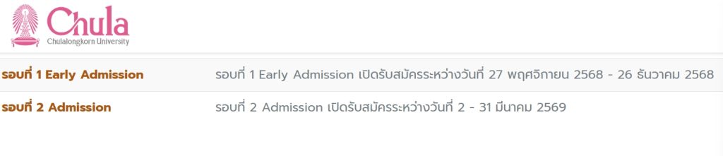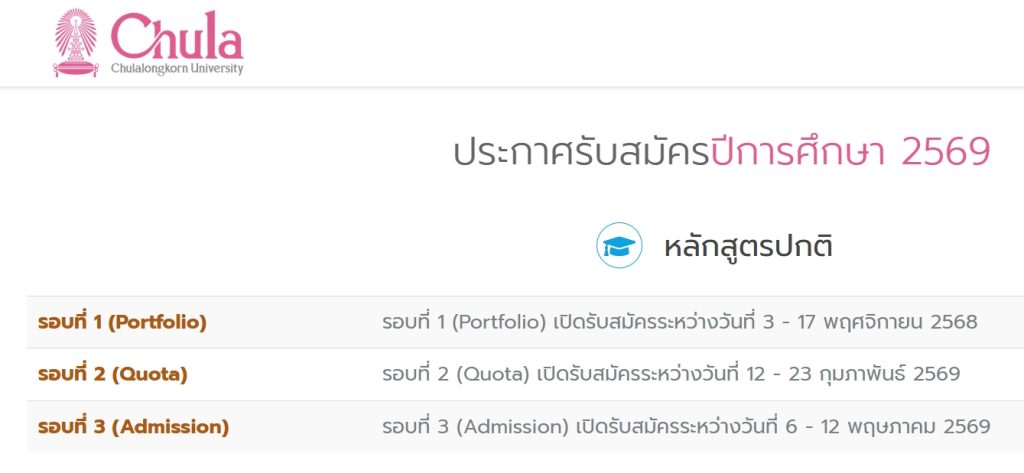 รอบที่ 2 โควตา รับสมัคร วันที่ 12-23 ก.พ.69 สมัครกับ จุฬาฯ ที่ admission.chula.ac.th