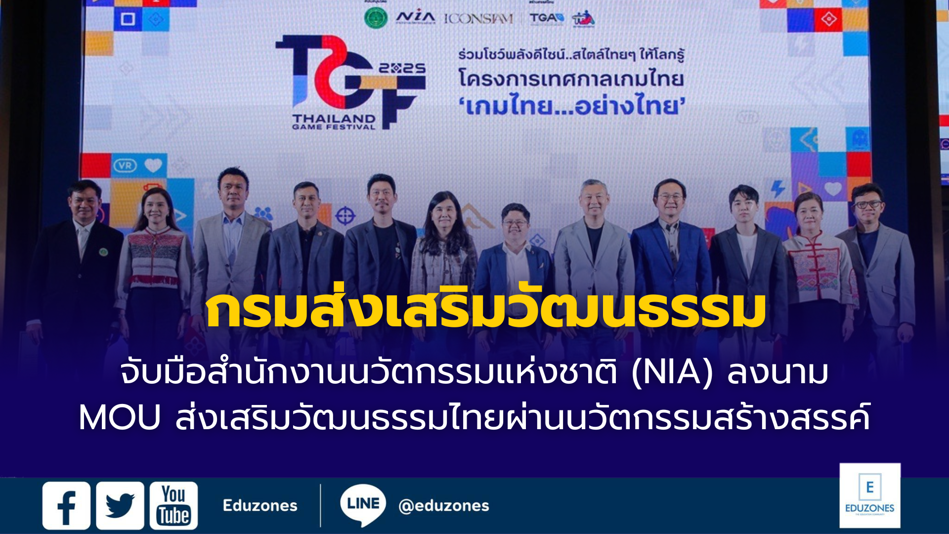 เมื่อเวลา 11.00 น. ของเมื่อวานนี้ (10 ก.ย.68) ที่สุราลัย ฮอลล์ ชั้น 7 ไอคอนสยาม เขตคลองสาน กทม. กรมส่งเสริมวัฒนธรรม กระทรวงวัฒนธรรม ร่วมกับสำนักงานนวัตกรรมแห่งชาติ (องค์การมหาชน) หรือ NIA ภายใต้การสนับสนุนพื้นที่การจัดงานโดยไอคอนสยาม ได้จัดพิธีลงนามบันทึกความเข้าใจ ว่าด้วยความร่วมมือในการส่งเสริมวัฒนธรรมไทยผ่านนวัตกรรมสร้างสรรค์ นำซอฟต์พาวเวอร์มาใช้กับอุตสาหกรรมเกมไทย ซึ่ง
