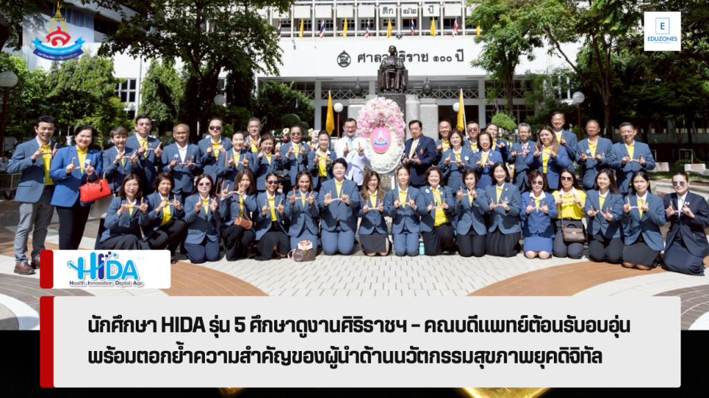 tui sakrapee September 18, 2025 tui sakrapee September 18, 2025 นักศึกษา HIDA รุ่น 5 ศึกษาดูงานศิริราชฯ – คณบดีแพทย์ต้อนรับอย่างอบอุ่น พร้อมตอกย้ำความสำคัญของผู้นำด้านนวัตกรรมสุขภาพยุคดิจิทัล เมื่อวันที่ 18 กันยายน 2568 นักศึกษาในหลักสูตรประกาศนียบัตรชั้นสูง “นวัตกรรมการจัดการสุขภาพยุคดิจิทัล” (Health Innovation Digital Age: HIDA) รุ่นที่ 5 ได้เดินทางเข้าศึกษาดูงาน ณ คณะแพทยศาสตร์ศิริราชพยาบาล มหาวิทยาลัยมหิดล โดยได้รับเกียรติจาก ศาสตราจารย์ นายแพทย์อภิชาติ อัศวมงคลกุล คณบดีคณะแพทยศาสตร์ศิริราชพยาบาล ให้การต้อนรับอย่างเป็นทางการ ไฮไลท์สำคัญของกิจกรรม คือการที่นักศึกษาได้ร่วม พิธีวางพวงมาลาและถวายราชสักการะพระราชานุสาวรีย์สมเด็จพระมหิตลาธิเบศร อดุลยเดชวิกรม พระบรมราชนก เพื่อสดุดีพระมหากรุณาธิคุณของพระบิดาแห่งการแพทย์และสาธารณสุขไทย ก่อนเข้าสู่การบรรยายสรุป และการเยี่ยมชม พิพิธภัณฑ์ศิริราชพิมุขสถาน อันทรงคุณค่าทางการแพทย์และประวัติศาสตร์ การศึกษาดูงานครั้งนี้ไม่เพียงมุ่งสร้างความเข้าใจด้านการบริหารจัดการสุขภาพเชิงนวัตกรรม แต่ยังตอกย้ำบทบาทของหลักสูตร HIDA ในการพัฒนา “ผู้นำด้านสุขภาพยุคใหม่” ที่มีวิสัยทัศน์กว้างไกล ครอบคลุมทั้งองค์ความรู้ทางวิชาการ เทคโนโลยีดิจิทัล และมิติด้านการจัดการสาธารณสุขเชิงระบบ ปัจจุบัน หลักสูตร HIDA รุ่นที่ 5 ได้ก้าวเข้าสู่ช่วงการเรียนรู้เชิงลึก โดยมีนักศึกษาเป็นผู้บริหารระดับสูงจากหลายหน่วยงาน ทั้งภาครัฐ เอกชน และสถาบันการศึกษา เข้าร่วม ซึ่งสะท้อนถึงความเชื่อมั่นในศักยภาพของหลักสูตรในการ ปั้นผู้นำด้านนวัตกรรมสุขภาพที่พร้อมรับมือกับความท้าทายในอนาคต