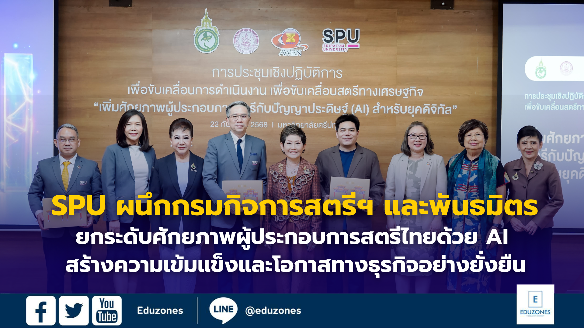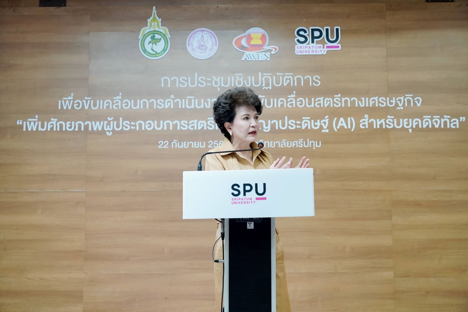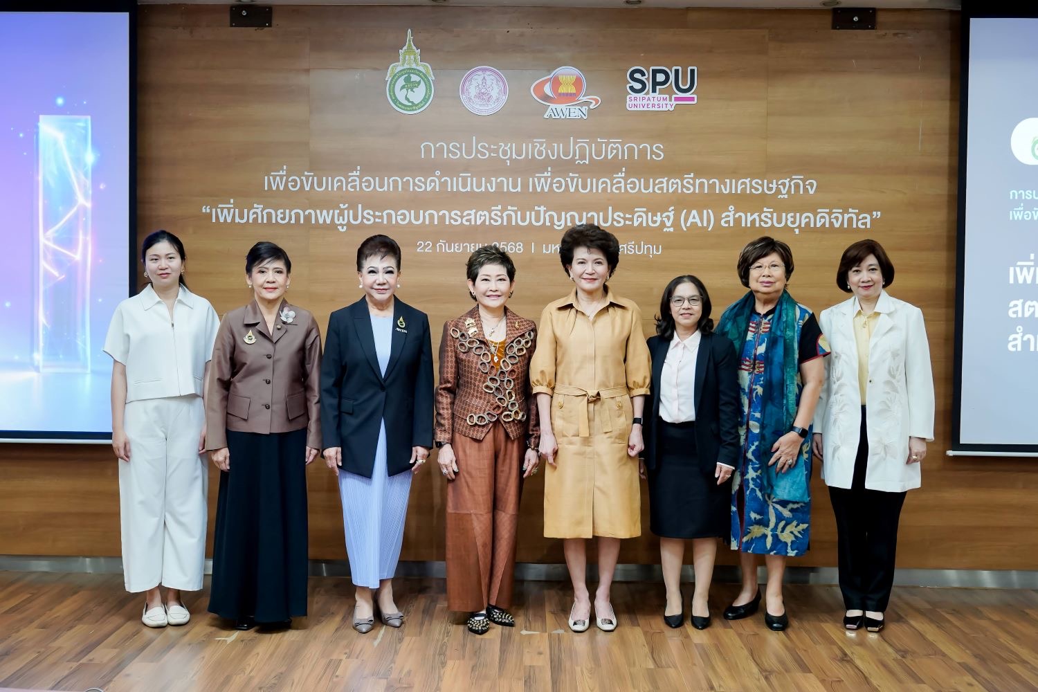 EZ Webmaster September 26, 2025 EZ Webmaster September 26, 2025 SPU ผนึกกรมกิจการสตรีฯ และพันธมิตร ยกระดับศักยภาพผู้ประกอบการสตรีไทยด้วย AI สร้างความเข้มแข็งและโอกาสทางธุรกิจอย่างยั่งยืน SPU ผนึกกรมกิจการสตรีฯ และพันธมิตร ยกระดับศักยภาพผู้ประกอบการสตรีไทยด้วย AI สร้างความเข้มแข็งและโอกาสทางธุรกิจอย่างยั่งยืน มหาวิทยาลัยศรีปทุม (SPU) ร่วมกับกรมกิจการสตรีและสถาบันครอบครัว สังกัดกระทรวงการพัฒนาสังคมและความมั่นคงของมนุษย์ (พม.) และพันธมิตรสำคัญ ได้แก่ สหพันธ์สมาคมสตรีนักธุรกิจและวิชาชีพแห่งประเทศไทย ในพระบรมราชินูปถัมภ์ และเครือข่ายผู้ประกอบการสตรีอาเซียน ประเทศไทย จัดการประชุมเชิงปฏิบัติการขับเคลื่อนสตรีทางเศรษฐกิจ ภายใต้หัวข้อ “เพิ่มศักยภาพผู้ประกอบการสตรีกับปัญญาประดิษฐ์ (AI) สำหรับยุคดิจิทัล” ให้กับบุคลากรจากหน่วยงานภาครัฐและองค์กรต่างๆ โดยมีนักศึกษาทีม AI Business Talent จากคณะบริหารธุรกิจคอยให้ความช่วยเหลือและแนะนำผู้เข้าอบรมอย่างใกล้ชิด ณ ห้องออดิทอเรียม 2 อาคาร 11 ชั้น 14 มหาวิทยาลัยศรีปทุม กทม. เมื่อวันที่ 22 กันยายน 2568 ในการนี้ได้รับเกียรติจาก ดร.รัชนีพร พุคยาภรณ์ พุกกะมาน อธิการบดี มหาวิทยาลัยศรีปทุม กล่าวต้อนรับและเน้นย้ำถึงความสำคัญของการเรียนรู้และประยุกต์ใช้ AI โดยชี้ว่า มหาวิทยาลัยศรีปทุมได้เดินหน้าขับเคลื่อน AI อย่างจริงจังตลอด 2 ปีที่ผ่านมา และกำลังจะพัฒนานักศึกษากลุ่มแรกจำนวน 1,000 คน ให้สามารถสร้าง AI Automation ได้อย่างมืออาชีพ เพื่อมุ่งสู่การเป็น HUB ทางด้านการศึกษา ด้าน AI “AI ไม่ใช่แค่เครื่องมือ แต่คือเพื่อนคู่คิดและกำลังสำคัญที่จะยกระดับประเทศชาติ เด็ก SPU ของเรามี ‘พี่จ๊อบ พี่เปอร์ พี่ฟิว’ เป็น AI Buddy ที่คอยช่วยเหลือทั้งเรื่องเรียนและการใช้ชีวิต องค์กรต่างๆ จึงจำเป็นต้องเรียนรู้ AI อย่างเร่งด่วน เพื่อก้าวทันโลกและสร้างความแข็งแกร่งให้เศรษฐกิจไทย” ดร.รัชนีพร กล่าว จากนั้น ดร.หม่อมหลวงปรียพรรณ ศรีธวัช ประธานเครือข่ายผู้ประกอบการสตรีอาเซียน-ประเทศไทย ได้กล่าวถึงความท้าทายของ AI ที่กำลังเข้ามามีบทบาทแทนแรงงานในหลายสาขา เช่น งานเอกสาร การวิเคราะห์ข้อมูล Call Center และการจัดการคลังสินค้า ซึ่งอาจส่งผลกระทบต่อผู้ประกอบการและแรงงานจำนวนมาก ดังนั้น การอบรมครั้งนี้จึงเป็นโอกาสในการเตรียมความพร้อมและเพิ่มขีดความสามารถการแข่งขันในตลาดแรงงาน ขณะที่ นางเบญจมาส แก่นเมือง รองอธิบดีกรมกิจการสตรีและสถาบันครอบครัว ได้กล่าวเปิดการประชุม โดยเน้นย้ำว่า แม้แต่หน่วยงานภาครัฐเองก็ต้องเร่งปรับตัวและนำ AI เข้ามาประยุกต์ใช้ในกระบวนการทำงาน เพื่อยกระดับประสิท