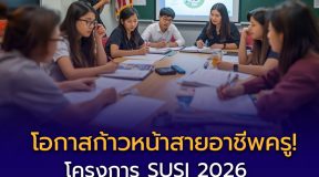 โครงการ SUSI 2026 เปิดรับสมัครแล้ว EZ WebmasterDecember 11, 2025 🇺🇸 โอกาสก้าวหน้าสายอาชีพครู! โครงการ SUSI 2026 เปิดรับสมัครแล้ว 🎓✨ โอกาสพิเศษสำหรับครูไทยที่อยากพัฒนาศักยภาพในระดับนานาชาติกลับมาอีกครั้ง!โครงการ Study of the U.S. Institutes (SUSI) for Secondary School Educators… กสศ. จับมือ CP ALL เปิดรับสมัคร “ทุนปัญญาภิวัฒน์เพื่อการศึกษา” ปีการศึกษา 2569 EZ WebmasterDecember 8, 2025 🎓 กสศ. จับมือ CP ALL เปิดรับสมัคร “ทุนปัญญาภิวัฒน์เพื่อการศึกษา” ปีการศึกษา 2569สนับสนุนเยาวชนเรียนต่อสายอาชีพ ตั้งแต่ ปวช. – ปวส. – ปริญญาตรีใน สถาบันการจัดการปัญญาภิวัฒน์ (PIM) และสถานศึกษาในเครือข่ายที่เข้าร่วมโครงการ… สสวท. เปิดรับสมัครทุน สควค. ปริญญาโท ปี 2569 รวม 90 ทุน ปั้นครู SMT คุณภาพรุ่นใหม่ EZ WebmasterDecember 8, 2025 สสวท. เปิดรับสมัครทุน สควค. ปริญญาโท ปี 2569 รวม 90 ทุนปั้นครู SMT คุณภาพรุ่นใหม่ สถาบันส่งเสริมการสอนวิทยาศาสตร์และเทคโนโลยี (สสวท.) เปิดรับสมัครนิสิตนักศึกษาชั้นปีที่ 4 และผู้สำเร็จการศึกษา วท.บ. ที่ตั้งใจเป็น “ครู SMT คุณภาพ” เข้ารับการคัดเลือกทุนโครงการส่งเสริมการผลิตครูที่มีความสามารถพิเศษทางวิทยาศาสตร์และคณิตศาสตร์ (สควค.) ประเภทที่ 2 ระดับปริญญาโท ปีการศึกษา 2569 จำนวน 90 ทุน โดยดำเนินการคัดเลือกร่วมกับมหาวิทยาลัยชั้นนำ… The University of British Columbia (UBC) เปิดรับนักศึกษานานาชาติ ปี 2026 พร้อมทุนระดับปริญญาตรี EZ WebmasterDecember 7, 2025 🎓🇨🇦 รู้จัก ‘The University of British Columbia (UBC)’ ท็อปยูใจกลางแวนคูเวอร์ เปิดรับนักศึกษาต่างชาติปี 2026 พร้อม “ทุน ป.ตรี ไม่จำกัดสาขา” ถ้าน้อง ๆหรือคนที่กำลังมองหา มหาวิทยาลัยระดับโลกในแคนาดา… ครู-อาจารย์ สกสค.ตอกย้ำบทบาทองค์กรคู่ใจครู ลงพื้นที่ภาคใต้ มอบเงินเยียวยาครูป่วย–ครูพิการอย่างเป็นรูปธรรม tui sakrapeeDecember 11, 2025 เมื่อวันที่ 10 ธันวาคม 2568 ดร.พีรพันธ์ เหมะรัต เลขาธิการคณะกรรมการ สกสค. พร้อมคณะลงพื้นที่จังหวัดนครศรีธรรมราช เพื่อเยี่ยม ให้กำลังใจ และรับทราบความเป็นอยู่ของผู้ที่ได้รับผลกระทบจากอุทกภัยในพื้นที่ พร้อมทั้งมอบเงินช่วยเหลือให้แก่ครูผู้ป่วยติดเตียงและผู้พิการตามโครงการเพิ่มสวัสดิการสวัสดิภาพและสิทธิประโยชน์เพื่อการดำรงชีพ เพื่อช่วยบรรเทาความเดือดร้อน และลดภาระค่าใช้จ่าย รวมถึงสร้างขวัญกำลังใจให้แก่ครอบครัวครู สำหรับการเยี่ยมเยียนครั้งนี้ เลขาธิการคณะกรรมการ… โครงการ SUSI 2026 เปิดรับสมัครแล้ว EZ WebmasterDecember 11, 2025 🇺🇸 โอกาสก้าวหน้าสายอาชีพครู! โครงการ SUSI 2026 เปิดรับสมัครแล้ว 🎓✨ โอกาสพิเศษสำหรับครูไทยที่อยากพัฒนาศักยภาพในระดับนานาชาติกลับมาอีกครั้ง!โครงการ Study of the U.S. Institutes (SUSI) for Secondary School Educators… สกสค. เดินหน้าเต็มกำลัง โอนงบ “ฟื้นฟูหลังน้ำลด” เยียวยาครูผู้ประสบอุทกภัย พร้อม