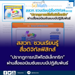 สสวท. มุ่งมั่นสร้างเครือข่ายศึกษานิเทศก์ที่มีความรู้ ความสามารถ และพร้อมเป็นกำลังสำคัญในการยกระดับคุณภาพการจัดการเรียนรู้ของผู้เรียนไทยอย่างยั่งยืน EZ WebmasterDecember 2, 2025 สสวท. มุ่งมั่นสร้างเครือข่ายศึกษานิเทศก์ที่มีความรู้ ความสามารถและพร้อมเป็นกำลังสำคัญในการยกระดับคุณภาพการจัดการเรียนรู้ของผู้เรียนไทยอย่างยั่งยืน สถาบันส่งเสริมการสอนวิทยาศาสตร์และเทคโนโลยี (สสวท.) จัดการอบรมเชิงปฏิบัติการพัฒนาผู้ช่วยวิทยากร หลักสูตรพัฒนาศักยภาพการนิเทศเชิงลึกสำหรับศึกษานิเทศก์ ระหว่างวันที่ 26–30 พฤศจิกายน 2568 ณ โรงแรมดิ เอมเมอรัลด์ กรุงเทพมหานคร การอบรมครั้งนี้จัดขึ้นเพื่อเตรียมความพร้อมให้กับศึกษานิเทศก์ จำนวน 55 คน ที่ผ่านการอบรมหลักสูตรผู้อำนวยการเรียนรู้ (Facilitator) และได้รับการคัดเลือกจาก สสวท. ให้ก้าวสู่บทบาทผู้ช่วยวิทยากร พร้อมทำหน้าที่ขยายผลหลักสูตรนิเทศเชิงลึกไปยังพื้นที่ต่าง ๆ…