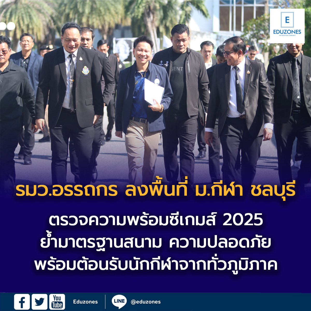 EZ Webmaster November 17, 2025 EZ Webmaster November 17, 2025 “รมว. อรรถกร” ลงพื้นที่สำรวจความพร้อมขั้นสุดท้ายภายในพื้นที่ มหาวิทยาลัยการกีฬาแห่งชาติ จังหวัดชลบุรี สำหรับจัดการแข่งขันกีฬาซีเกมส์ 2025 “รมว. อรรถกร” ลงพื้นที่สำรวจความพร้อมขั้นสุดท้ายภายในพื้นที่ มหาวิทยาลัยการกีฬาแห่งชาติ จังหวัดชลบุรี สำหรับจัดการแข่งขันกีฬาซีเกมส์ 2025 เมื่อวันศึกร์ที่ 14 พฤศจิกายน 2568 นายอรรถกร ศิริลัทธยากร รัฐมนตรีว่าการกระทรวงการท่องเที่ยวและกีฬา นำคณะผู้บริหารลงพื้นที่จังหวัดชลบุรี เพื่อตรวจความพร้อมขั้นสุดท้ายในการเป็นเจ้าภาพจัดการแข่งขันกีฬาซีเกมส์ ครั้งที่ 33 ระหว่างวันที่ 9-20 ธันวาคม 2568 ภายในพื้นที่มหาวิทยาลัยการกีฬาแห่งชาติ จังหวัดชลบุรี เพื่อสร้างความเชื่อมั่นในการเป็นเจ้าภาพที่สมบูรณ์แบบ ทั้งมาตรฐานสนามแข่งขัน สิ่งอำนวยความสะดวกสำหรับนักกีฬา นักท่องเที่ยว และความปลอดภัย เพื่อต้อนรับทัพนักกีฬาจากทั่วโลก โดยมี ผู้ช่วยศาสตราจารย์ ดร.วีรศักดิ์ วิศาลาภรณ์ อธิการบดีมหาวิทยาลัยการกีฬาแห่งชาติ พร้อมด้วยคณะผู้บริหาร และบุคลากรมหาวิทยาลัยการกีฬาแห่งชาติ ที่เกี่ยวข้องให้การต้อนรับ สำหรับภารกิจการลงพื้นที่ตรวจความพร้อมขั้นสุดท้ายภายในพื้นที่ มหาวิทยาลัยการกีฬาแห่งชาติ ซึ่ง คณะของรัฐมนตรีว่าการกระทรวงการท่องเที่ยวและกีฬา ได้รับฟังรายงานสรุปจากคณะทำงานและผู้รับผิดชอบทั้ง 5 จุด และติดตามการเก็บรายละเอียดในสนามแข่งขันต่างๆ เริ่มต้นด้วยการตรวจเยี่ยม มหาวิทยาลัยการกีฬาแห่งชาติ วิทยาเขตชลบุรี เพื่อตรวจความพร้อมสนามแข่งขัน “กีฬาฟลอร์บอล”, “กีฬาฟุตบอลหญิง”, “กีฬาฮอกกี้กลางแจ้ง” และ ศูนย์วิทยาศาสตร์การกีฬา ก่อนจะปิดท้ายภารกิจที่ โรงเรียนกีฬาจังหวัดชลบุรี เพื่อตรวจความพร้อมสนามแข่งขัน “กีฬาเทคบอล” และ “กีฬายกน้ำหนัก” ทั้งนี้การลงพื้นที่ตรวจความพร้อมขั้นสุดท้ายในครั้งนี้ ถือเป็นการตอกย้ำถึงความมุ่งมั่นของกระทรวงการท่องเที่ยวและกีฬา ที่จะผลักดันให้การเป็นเจ้าภาพซีเกมส์ ครั้งที่ 33 ประสบความสำเร็จ ไม่เพียงแต่ในด้านการแข่งขัน แต่ยังรวมถึงการสร้างความประทับใจ การส่งเสริมภาพลักษณ์ที่ดีของประเทศ และการกระตุ้นเศรษฐกิจภาคการท่องเที่ยวอย่างยั่งยืน