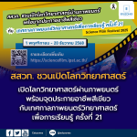 YSEALI CyberSafe ASEAN 2026 เปิดรับสมัคร! ทุนเต็มสำหรับผู้นำรุ่นใหม่สู้ภัยสแกมออนไลน์ EZ WebmasterDecember 2, 2025 🔐 YSEALI CyberSafe ASEAN 2026 เปิดรับสมัคร! ทุนเต็มสำหรับผู้นำรุ่นใหม่สู้ภัยสแกมออนไลน์ โครงการ YSEALI CyberSafe ASEAN 2026 เปิดรับสมัครผู้นำรุ่นใหม่จาก 10 ประเทศอาเซียน รวมถึงประเทศไทย เพื่อเข้าร่วมเวิร์กช็อปเชิงลึกด้านการป้องกันและรับมือ ภัยหลอกลวงออนไลน์… เปิดรับแล้ว! ทุนเต็มจำนวน EPOS จาก DAAD สำหรับปริญญาโทด้าน “ความเสี่ยง สิ่งแวดล้อม และความมั่นคงมนุษย์” ที่เยอรมนี EZ WebmasterDecember 2, 2025 🌍 เปิดรับแล้ว! ทุนเต็มจำนวน EPOS จาก DAAD สำหรับปริญญาโทด้าน “ความเสี่ยง สิ่งแวดล้อม และความมั่นคงมนุษย์” ที่เยอรมนี โอกาสใหญ่สำหรับคนไทยสายสิ่งแวดล้อม ภัยพิบัติ และการพัฒนาที่ยั่งยืนมาถึงแล้ว! หลักสูตร MSc Geography of… ทุนปริญญาเอกจาก NTU สิงคโปร์ ประจำปี 2569 EZ WebmasterNovember 28, 2025 📰 ทุนปริญญาเอกจาก NTU สิงคโปร์ ประจำปี 2569 ด้วย มหาวิทยาลัยเทคโนโลยีนันยาง (Nanyang Technological University: NTU) สาธารณรัฐสิงคโปร์ ได้ทูลเกล้าฯ ถวายทุนการศึกษาแด่ สมเด็จพระกนิษฐาธิราชเจ้า กรมสมเด็จพระเทพรัตนราชสุดาฯ เพื่อพระราชทานแก่ผู้มีคุณสมบัติเหมาะสม… ครู-อาจารย์ อบรมออนไลน์ฟรี! รับเกียรติบัตรจากคุรุสภา ปี 2568 รวม 3 หลักสูตรคุณภาพ EZ WebmasterDecember 5, 2025 📣 อบรมออนไลน์ฟรี! รับเกียรติบัตรจากคุรุสภา ปี 2568 รวม 3 หลักสูตรคุณภาพ โอกาสดีสำหรับครู นักศึกษา และผู้ที่สนใจด้านการศึกษา!คุรุสภาเปิดอบรมออนไลน์ฟรี ประจำปี 2568 จำนวน 3 หลักสูตร อบรมผ่านระบบออนไลน์ สะดวก… มจพ. สุดปลื้ม! ศ.ดร.วิไล รังสาดทอง คณะวิทย์ มจพ. คว้ารางวัล นักวิจัยดีเด่นแห่งชาติ ประจำปี 2569 ด้านเกษตรฯ รับ 5 แสน! EZ WebmasterDecember 4, 2025 มจพ. สุดปลื้ม! ศ.ดร.วิไล รังสาดทอง คณะวิทย์ มจพ. คว้ารางวัล นักวิจัยดีเด่นแห่งชาติ ประจำปี 2569 ด้านเกษตรฯ รับ 5 แสน! ศ.ดร.วิไล รังสาดทอง คณะวิทยาศาสตร์ประยุกต์ มหาวิทยาลัยเทคโนโลยีพระจอมเกล้าพระนครเหนือ… สสวท. เชิดชูเกียรติ! เปิดทำเนียบ “DPST Hall of Fame 2568” 4 บัณฑิต พสวท. นักวิจัยดีเด่น-ผู้นำพัฒนาวงการวิทยาศาสตร์ไทย EZ WebmasterDecember 3, 2025 สสวท. เชิดชูเกียรติ! เปิดทำเนียบ “DPST Hall of Fame 2568” 4 บัณฑิต พสวท. นักวิจัยดีเด่น-ผู้นำพัฒนาวงการวิทยาศาสตร์ไทย รองศาสตราจารย์ ดร.ธีระเดช เจียรสุขสกุล ผู้อำนวยการสถาบันส่งเสริมการสอนวิทยาศาสตร์และเทคโนโลยี (สสวท.) ประกาศความภาคภูมิใจในการคัดเลือกผู้สำเร็จการศึกษาทุนโครงการพัฒนาและส่งเสริมผู้มีความสามารถพิเศษทางวิทยาศาสตร์และเทคโนโลยี (พสวท.) เข้าสู่หอเกียรติยศ… แนวทางสำหรับครู – 60 วิธีจัดการเรียนรู้เพื่อพัฒนาผู้เรียนอย่างรอบด้าน EZ WebmasterDecember 2, 2025 📚 แนวทางสำหรับครู – 60 วิธีจัดการเรียนรู้เพื่อพัฒนาผู้เรียนอย่างรอ