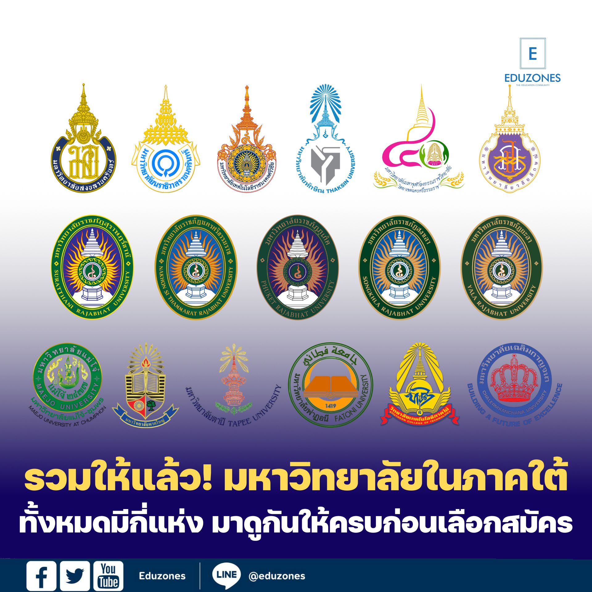 EZ Webmaster November 25, 2025 EZ Webmaster November 25, 2025 รวมให้แล้ว! มหาวิทยาลัยในภาคใต้ทั้งหมดมีกี่แห่ง มาดูกันให้ครบก่อนเลือกสมัคร รวมให้แล้ว! มหาวิทยาลัยในภาคใต้ ทั้งหมดมีกี่แห่ง มาดูกันให้ครบก่อนเลือกสมัคร มหาวิทยาลัยรัฐบาล มหาวิทยาลัยสงขลานครินทร์ คณะที่เปิดสอน กลุ่มวิทยาศาสตร์สุขภาพ คณะการแพทย์แผนไทย คณะทันตแพทยศาสตร์ คณะเทคนิคการแพทย์ คณะแพทยศาสตร์ คณะพยาบาลศาสตร์ หาดใหญ่ คณะพยาบาลศาสตร์ ปัตตานี คณะเภสัชศาสตร์ คณะสัตวแพทยศาสตร์ กลุ่มวิทยาศาสตร์และเทคโนโลยี คณะการจัดการสิ่งแวดล้อม คณะทรัพยากรธรรมชาติ คณะเทคโนโลยีสิ่งแวดล้อม คณะวิทยาการสื่อสาร คณะวิทยาศาสตร์ คณะวิทยาศาสตร์และเทคโนโลยี คณะวิทยาศาสตร์และเทคโนโลยีอุตสาหกรรม คณะวิศวกรรมศาสตร์ คณะสถาปัตยกรรมศาสตร์ คณะอุตสาหกรรมเกษตร วิทยาลัยการคอมพิวเตอร์ กลุ่มมนุษยศาสตร์และสังคมศาสตร์ คณะการบริการและการท่องเที่ยว คณะนิติศาสตร์ คณะพาณิชยศาสตร์และการจัดการ คณะมนุษยศาสตร์และสังคมศาสตร์ คณะรัฐศาสตร์ คณะวิเทศศึกษา คณะวิทยาการจัดการ คณะศิลปกรรมศาสตร์ คณะศิลปศาสตร์ คณะศิลปศาสตร์และวิทยาการจัดการ คณะศึกษาศาสตร์ คณะเศรษฐศาสตร์ คณะวิทยาการอิสลาม วิทยาลัยนานาชาติ หาดใหญ่ วิทยาลัยนานาชาติ สุราษฎร์ธานี วิทยาลัยนานาชาติยางพาราไทย-จีน ข้อมูลเพิ่มเติม มหาวิทยาลัยนราธิวาสราชนครินทร์ คณะพยาบาลศาสตร์ คณะวิทยาศาสตร์และเทคโนโลยี คณะวิศวกรรมศาสตร์ คณะวิทยาการจัดการ คณะเกษตรศาสตร์ คณะศิลปศาสตร์ สถาบันอิสลามและอาหรับศึกษา ข้อมูลเพิ่มเติม มหาวิทยาลัยเทคโนโลยีราชมงคลศรีวิชัย คณะที่สงขลา คณะครุศาสตร์อุตสาหกรรมและเทคโนโลยี คณะบริหารธุรกิจ คณะวิศวกรรมศาสตร์ คณะศิลปศาสตร์ คณะสถาปัตยกรรมศาสตร์ วิทยาลัยรัตภูมิ ข้อมูลเพิ่มเติม คณะที่วิทยาเขตตรัง คณะวิทยาศาสตร์และเทคโนโลยีการประมง คณะวิศวกรรมศาสตร์และเทคโนโลยี วิทยาลัยการโรงแรมและการท่องเที่ยว ข้อมูลเพิ่มเติม คณะที่วิทยาเขตนครศรีธรรมราช พื้นที่ทุ่งใหญ่ (สำนักงานวิทยาเขตฯ) คณะเกษตรศาสตร์ คณะสัตวแพทยศาสตร์ คณะอุตสาหกรรมเกษตร คณะวิทยาศาสตร์และเทคโนโลยี พื้นที่ไสใหญ่ คณะเกษตรศาสตร์ คณะเทคโนโลยีการจัดการ คณะวิทยาศาสตร์และเทคโนโลยี พื้นที่ขนอม (วิทยาลัยเทคโนโลยีอุตสาหกรรมและการจัดการ) ข้อมูลเพิ่มเติม มหาวิทยาลัยทักษิณ คณะที่วิทยาเขตสงขลา คณะศึกษาศาสตร์ คณะมนุษยศาสตร์และสังคมศาสตร์ คณะเศรษฐศาสตร์และบริหารธุรกิจ คณะนิติศาสตร์ คณะศิลปกรรมศาสตร์ บัณฑิตวิทยาลัย วิทยาลัยการจัดการเพื่อการพัฒนา วิทยาลัยนานาชาติ ข้อมู