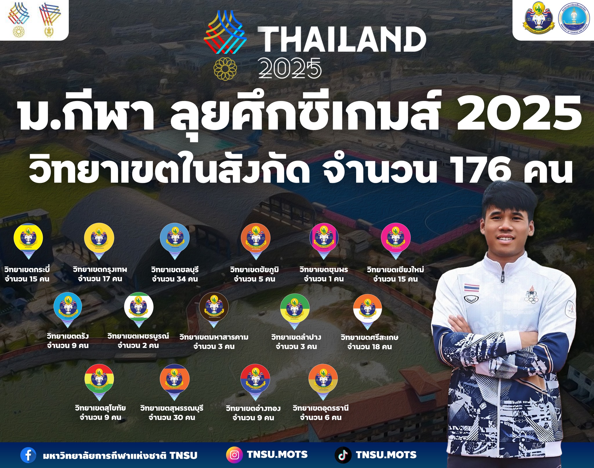 EZ Webmaster November 26, 2025 EZ Webmaster November 26, 2025 รวมพลังเชียร์! ทัพ มหาวิทยาลัยการกีฬาแห่งชาติ ลุยศึกซีเกมส์ 2025 ในนาม “ทีมชาติไทย” 💚🤍💛 รวมพลังเชียร์! ทัพ มหาวิทยาลัยการกีฬาแห่งชาติ ลุยศึกซีเกมส์ 2025 ในนาม “ทีมชาติไทย” 🇹🇭 มหกรรมการแข่งขันกีฬา ซีเกมส์ ครั้งที่ 33 (SEA Games 2025) จัดขึ้นระหว่างวันที่ 9–20 ธันวาคม 2568 โดยประเทศไทยได้รับเกียรติเป็นเจ้าภาพจัดการแข่งขันในปีนี้ ถือเป็นอีกหนึ่งหน้าประวัติศาสตร์สำคัญของวงการกีฬาไทย ในโอกาสนี้ มหาวิทยาลัยการกีฬาแห่งชาติ (มกช.) ขอเชิญชวนทุกท่าน — ไม่ว่าจะเป็น ศิษย์เก่า ศิษย์ปัจจุบัน บุคลากร ครู อาจารย์ ตลอดจนพี่น้องคนไทยทุกคน ร่วมส่งกำลังใจ แรงเชียร์ และแรงสนับสนุนให้กับนักกีฬาของมหาวิทยาลัยการกีฬาแห่งชาติ ซึ่งได้รับคัดเลือกเป็นตัวแทนทีมชาติไทย เข้าร่วมในการแข่งขันซีเกมส์ 2025 ณ แผ่นดินไทยบ้านเรา 🏟️🇹🇭 🏅 นักกีฬาม.กีฬา สร้างชื่อเสียงระดับชาติ ในปีนี้ มหาวิทยาลัยการกีฬาแห่งชาติ มีนักกีฬาสังกัดระดับวิทยาเขต ได้รับเลือกเป็นตัวแทนทีมชาติไทย เข้าร่วมแข่งขันในมหกรรมซีเกมส์ครั้งที่ 33 รวมทั้งสิ้น 176 คนประกอบด้วย✨ นักกีฬา✨ ผู้ฝึกสอน และทีมเจ้าหน้าที่จากหลากหลายชนิดกีฬา ซึ่งล้วนเป็นผู้ที่ทุ่มเทฝึกฝนอย่างหนัก พร้อมทำหน้าที่แทนคนไทยทั้งประเทศบนเวทีอาเซียน 🙌 เชียร์ไทยให้สุดใจ — ช่วยส่งต่อพลังแห่งความภูมิใจ ขอเชิญทุกท่านร่วมเป็นส่วนหนึ่งของพลังแห่งกำลังใจให้กับทัพนักกีฬามหาวิทยาลัยการกีฬาแห่งชาติ ในนาม “ทีมชาติไทย”เพื่อ💚 สร้างแรงใจในการแข่งขัน🤍 แสดงพลังแห่งความเป็นหนึ่งเดียว💛 และร่วมกันสร้างชื่อเสียงให้ประเทศไทย 🇹🇭 📄 ดูรายชื่อนักกีฬาและเจ้าหน้าที่จาก มหาวิทยาลัยการกีฬาแห่งชาติ👉 https://drive.google.com/file/d/1DqS1-E7EHOJxou33xWdFjTov29geJu7y/view 🌟 เรามาเชียร์ไทยให้ดังไปทั้งอาเซียน!💚🤍💛 ด้วยพลังแห่งศรัทธา ความมุ่งมั่น และหัวใจของนักกีฬาไทย