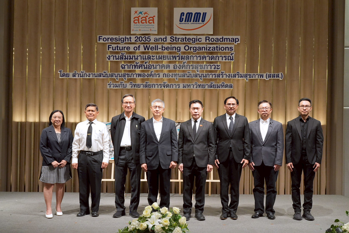 EZ Webmaster November 28, 2025 EZ Webmaster November 28, 2025 CMMU–สสส. ร่วมฉาย 16 ฉากทัศน์อนาคต 4 องค์กรหลัก พร้อมแนะ Roadmap สู่สุขภาวะองค์กรปี 2035 CMMU–สสส. ร่วมฉาย 16 ฉากทัศน์อนาคต 4 องค์กรหลัก พร้อมแนะ R oadmap สู่สุขภาวะองค์กรปี 2035 นายพงษ์ศักดิ์ ธงรัตนะ ผู้อำนวยการสำนักสนับสนุนสุขภาวะองค์กร (สำนัก 8) สสส. (ที่ 5 จากซ้าย) รศ.ดร.ณัฐสิทธิ์ เกิดศรี หัวหน้าทีมวิจัยโครงการจัดทำแผนที่นำทางและการคาดการณ์อนาคตเชิงยุทธศาสตร์ งานสร้างเสริมสุขภาวะองค์กร (ที่ 6 จากซ้าย) และ ผศ.ดร. บุญยิ่ง คงอาชาภัทร หัวหน้าโครงการจัดทำแผนที่นำทางและการคาดการณ์อนาคต เชิงยุทธศาสตร์ งานสร้างเสริมสุขภาวะองค์กร (ที่ 7 จากซ้าย) ร่วมงานแถลงข่าว “CMMU – สสส.” เผยแพร่ผลการคาดการณ์ฉากทัศน์อนาคต “Foresight 2035 and Strategic Roadmap: Future of Well-being Organizations” งานดังกล่าวเป็นการนำเสนอภาพอนาคตสุขภาวะองค์กรไทยในอีก 10 ปีข้างหน้า ครอบคลุม 4 ประเภทองค์กรหลัก ได้แก่ ภาคเอกชน ภาครัฐ วัด และมหาวิทยาลัย ผ่านผลการวิเคราะห์ 16 ฉากทัศน์ ตั้งแต่ฉากทัศน์ในอุดมคติ ความเสี่ยงที่ต้องเผชิญ ไปจนถึงความเลวร้าย พร้อมเสนอ Roadmap เพื่อเป็นแนวทางการสร้างเสริมสุขภาวะองค์กรในระยะสั้น ระยะกลาง และระยะยาว อันจะช่วยให้องค์กรไทยสามารถหลีกเลี่ยงอนาคตที่ไม่พึงประสงค์และพัฒนายั่งยืน โดยงานดังกล่าว จัดขึ้นเมื่อเร็วๆ นี้ ณ ณ โรงแรมอัศวินแกรนด์คอนเวนชัน ถ.วิภาวดี (เรียงจากขวาไปซ้าย) ผศ.ดร. พรศรี เหล่ารุจิสวัสดิ์ นักวิจัย พล.ต.ท. นพ. เอกพันธุ์ ศรีศักดิ์สกุล กรรมการกำกับทิศทางแผนฯ นพ. ณรงค์ศักดิ์ อังคะสุวพลา ประธานกรรมการกำกับทิศทาง แผนสร้างเสริมสุขภาวะในองค์กร นายชาญเชาวน์ ไชยานุกิจ ประธานกรรมการบริหารแผนคณะที่ 4 สำนักงานกองทุนสนับสนุนการสร้างเสริมสุขภาพ นายพงษ์ศักดิ์ ธงรัตนะ ผู้อำนวยการสำนักสนับสนุนสุขภาวะองค์กร (สำนัก 8) สำนักงานกองทุนสนับสนุนการสร้างเสริมสุขภาพ รศ.ดร.ณัฐสิทธิ์ เกิดศรี หัวหน้าทีมวิจัยโครงการจัดทำแผนที่นำทางและการคาดการณ์อนาคตเชิงยุทธศาสตร์ งานสร้างเสริมสุขภาวะองค์กร ผศ.ดร. บุญยิ่ง คงอาชาภัทร หัวหน้าโครงการจัดทำแผนที่นำทางและการคาดการณ์อนาคต เชิงยุทธศาสตร์ งานสร้างเสริมสุขภาวะองค์กร ผศ.ดร. นิสิต มโนตั้งวรพันธ์ นักวิจัย