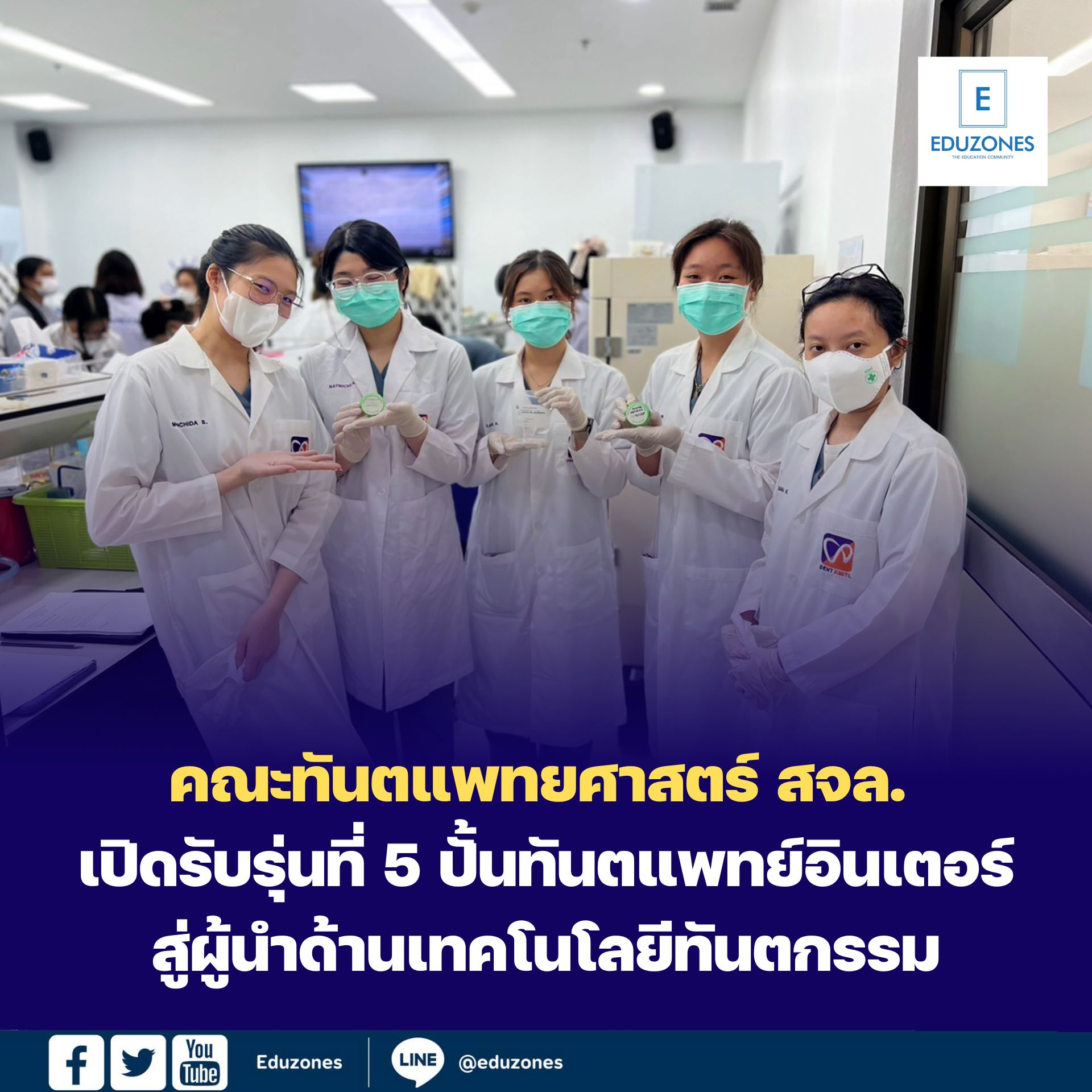 EZ Webmaster December 2, 2025 EZ Webmaster December 2, 2025 คณะทันตแพทยศาสตร์ สจล. เปิดรับรุ่นที่ 5 ปั้นทันตแพทย์อินเตอร์สู่ผู้นำด้านเทคโนโลยีทันตกรรม คณะทันตแพทยศาสตร์ สจล. เปิดรับรุ่นที่ 5 ปั้นทันตแพทย์อินเตอร์สู่ผู้นำด้านเทคโนโลยีทันตกรรม คณะทันตแพทยศาสตร์ อินเตอร์ ของสถาบันเทคโนโลยีพระจอมเกล้าเจ้าคุณทหารลาดกระบัง (สจล.) เดินหน้าพัฒนาทันตแพทย์รุ่นใหม่ให้มีความสามารถแบบรอบด้าน ทั้งด้าน เทคโนโลยี AI, วิศวกรรม, วิทยาศาสตร์การแพทย์, การออกแบบนวัตกรรม และทักษะด้านธุรกิจ เพื่อเตรียมความพร้อมสู่โลกทันตกรรมยุคดิจิทัลที่มีการแข่งขันสูง หลักสูตรนานาชาติถูกออกแบบให้แตกต่างจากสถาบันอื่น โดยเน้น การบูรณาการหลายศาสตร์ (Interdisciplinary Integration) ให้สอดคล้องกับทักษะแห่งอนาคตที่ทันตแพทย์ต้องมี ทั้งด้านเทคโนโลยี นวัตกรรม และความคิดสร้างสรรค์ รองศาสตราจารย์ ดร.ทพญ.อารยา พงษ์หาญยุทธ คณบดีคณะทันตแพทยศาสตร์ สจล. กล่าวว่า “หลักสูตรทันตแพทย์อินเตอร์ของ สจล. มุ่งเน้นการสร้างทันตแพทย์ที่มีวิสัยทัศน์ ใช้เทคโนโลยีเป็น ทำวิจัยเป็น และคิดนวัตกรรมได้จริง ทั้งหมดนี้เป็นทักษะสำคัญสำหรับผู้นำด้านทันตกรรมในอนาคต” ท่านยังกล่าวถึงจุดเด่นของหลักสูตร ได้แก่: Digital Dentistry ตั้งแต่ปี 1: การเรียนการสอนใช้เทคโนโลยีล้ำสมัย เช่น CAD/CAM, 3D Printing, Intraoral Scanner และ Simulation ดิจิทัลตั้งแต่ปีแรก ช่วยให้นักศึกษามีพื้นฐานด้านเทคโนโลยีที่แข็งแรงตั้งแต่ต้น อุปกรณ์และห้องปฏิบัติการทันตกรรมขั้นสูง: ห้องแลบและคลินิกมีอุปกรณ์ครบวงจร พร้อมระบบจัดการมาตรฐานสากล ช่วยเสริมทักษะการรักษาและทักษะบริหารจัดการไปพร้อมกัน การเรียนรู้แบบ Interdisciplinary: นักศึกษาได้เรียนร่วมกับหลายคณะ เช่น แพทยศาสตร์ วิศวกรรม วิทยาศาสตร์ IT และการออกแบบเพื่อสร้างนวัตกรรมทันตกรรมแบบข้ามศาสตร์ (Multi-disciplinary Innovation) ที่ตอบโจทย์โลกจริง อาจารย์ผู้สอนระดับนานาชาติ: มีวิทยากรและผู้เชี่ยวชาญจากต่างประเทศร่วมสอน พร้อมอุปกรณ์ล้ำสมัย ช่วยยกระดับคุณภาพการเรียนรู้ให้เทียบเท่าสถาบันชั้นนำทั่วโลก โครงสร้างการศึกษาและจำนวนรับ ระยะเวลาเรียน: 6 ปี รับนักศึกษา: ไม่เกิน 30 คนต่อรุ่น ค่าใช้จ่ายเฉลี่ย: ประมาณ 550,000 บาทต่อภาคการศึกษา รวมตลอดหลักสูตรประมาณ 6.6 ล้านบาท เพื่อเปิดโอกาสให้นักศึกษาที่มีความสามารถ คณะฯ มี ทุนเต็มจำนวนและทุนบางส่วน 6 ทุนต่อปี คณะทันตแพทยศาสตร์(หลักสูตรนานาชาติ)สถาบันเทคโนโลยีพระจอมเกล้าเจ้าคุณทหารลาดกระบัง (สจล.) พร้อมเปิดรับสมัครนักศึกษาปีการศึกษา 2569 รอบแรก ตั้งแต่วันนี้ 5 พฤศจิกายน 2568 ถึง 25 ธันวาคม 2568 ติดตามรายละเอียด และเกณฑ์การรับสมัครได้ดังรายล