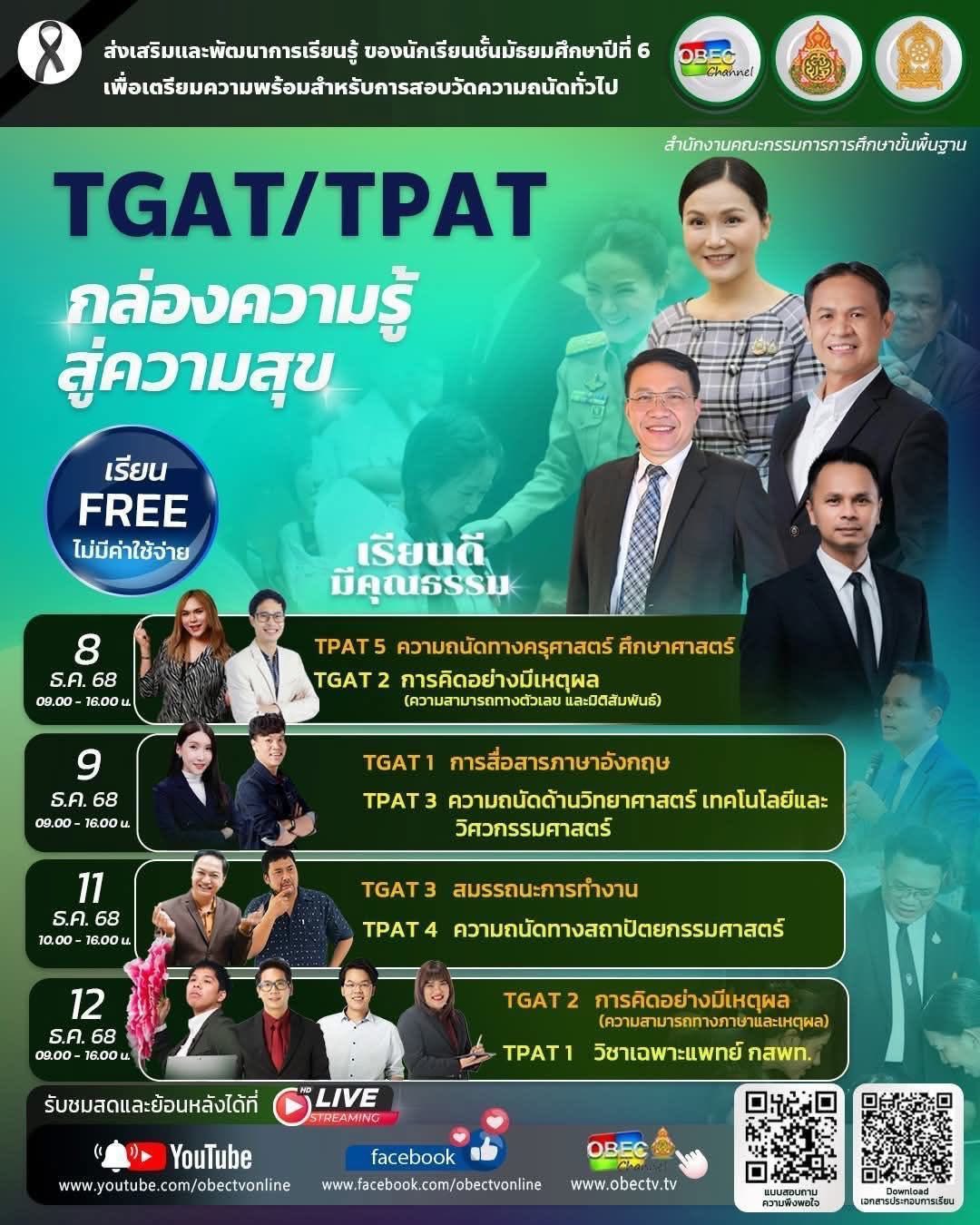 📣 สพฐ. จัดกิจกรรมเสริมความพร้อมนักเรียน ม.6 สอบ #TGAT #TPAT ตามปฏิทิน #TCAS69 (เรียนฟรี ออนไลน์ 100%)