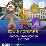 รวมมหาวิทยาลัยปั้นนักศึกษาแพทย์มากที่สุด ในปี 2567 EZ WebmasterDecember 15, 2025 รวมมหาวิทยาลัยปั้นนักศึกษาแพทย์มากที่สุด ในปี 2567 ในปีการศึกษา พ.ศ. 2567 มีสถาบันที่จัดการศึกษาและได้รับใบอนุญาตให้ผลิตบัณฑิตแพทย์รวม 27 แห่ง โดยมีจำนวนผลผลิตรวมประมาณ 3,000 คน ต่อปี ซึ่งมหาวิทยาลัยที่เป็นแหล่งผลิตแพทย์รายใหญ่ที่สุดคือ จุฬาลงกรณ์มหาวิทยาลัย (308 คน)…