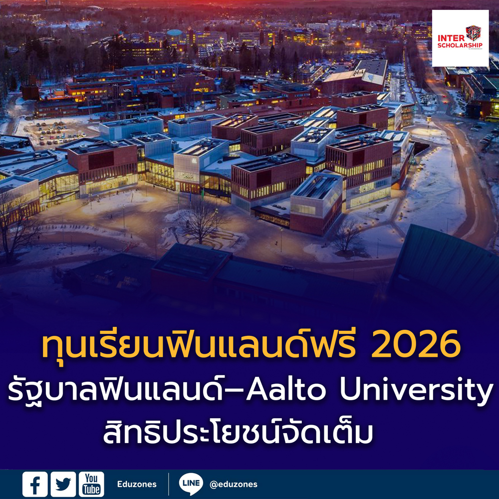 EZ Webmaster December 24, 2025 EZ Webmaster December 24, 2025 รัฐบาลฟินแลนด์–Aalto University เปิด “ทุนเรียนฟรี 2026” 🇫🇮 รัฐบาลฟินแลนด์–Aalto University เปิด “ทุนเรียนฟรี 2026” ป.ตรี–ป.โท สิทธิประโยชน์จัดเต็ม สู่มหาวิทยาลัยระดับโลก เฮลซิงกิ ประเทศฟินแลนด์ — Aalto University มหาวิทยาลัยชั้นนำระดับโลกของประเทศฟินแลนด์ ประกาศเปิดรับสมัคร Aalto University Scholarships 2026 สำหรับนักศึกษานานาชาติ รวมถึง นักศึกษาไทย เพื่อเข้าศึกษาต่อในระดับ ปริญญาตรี (Bachelor’s Degree) และ ปริญญาโท (Master’s Degree) ประจำปีการศึกษา 2026 ทุนดังกล่าวเป็น ทุนจากมหาวิทยาลัยโดยตรง (Official University Scholarship) ภายใต้นโยบายของ Finland ที่สนับสนุนการดึงดูดนักศึกษานานาชาติคุณภาพสูง เปิดโอกาสให้ผู้เรียนเข้าถึงการศึกษามาตรฐานยุโรปโดยไม่เป็นภาระค่าใช้จ่ายด้านค่าเล่าเรียน และสามารถใช้ชีวิตในประเทศที่ได้รับการจัดอันดับคุณภาพการศึกษาดีที่สุดแห่งหนึ่งของโลก 🎓 ระดับและสาขาที่เปิดรับทุน ระดับปริญญาตรี (Bachelor’s Degree) ระดับปริญญาโท (Master’s Degree) ครอบคลุมหลากหลายสาขาที่โดดเด่นและเป็นที่ต้องการในระดับนานาชาติ อาทิEngineering, Technology, Business, Design, Innovation และ Sustainability 💎 สิทธิประโยชน์หลักของทุน ผู้ที่ได้รับทุนจะได้รับสิทธิประโยชน์ (ขึ้นอยู่กับประเภททุนและหลักสูตร) ได้แก่ ✅ ยกเว้นค่าเล่าเรียน 100% หรือสูงสุดตามเกณฑ์ทุน ✅ ทุนสนับสนุนค่าครองชีพ (เฉพาะบางประเภททุน/บางหลักสูตร) ✅ โอกาสขอที่พักนักศึกษา ในเครือมหาวิทยาลัย ✅ ประกันสุขภาพ ตามเงื่อนไขนักศึกษานานาชาติของฟินแลนด์ ✅ เรียนและใช้ชีวิตในประเทศที่มี คุณภาพชีวิตและความปลอดภัยสูง หมายเหตุ: รายละเอียดสิทธิประโยชน์แตกต่างกันไปตามหลักสูตรและการพิจารณาของคณะ 📝 วิธีการสมัคร ผู้สนใจต้อง สมัครทุนพร้อมกับการสมัครเรียน ผ่านระบบรับสมัครของ Aalto Universityการพิจารณาทุนจะอ้างอิงจาก ผลการเรียน ความเป็นเลิศทางวิชาการ ศักยภาพและความเหมาะสมของผู้สมัครกับหลักสูตร 🌍 ทำไม “คนไทย” ไม่ควรพลาดทุนนี้ 🇹🇭 นักศึกษาไทยสมัครได้โดยตรง 🇫🇮 ฟินแลนด์เป็นประเทศที่ ปลอดภัยและมีสวัสดิการนักศึกษาชัดเจน 🎓 วุฒิการศึกษาจาก Aalto University ได้รับการยอมรับทั่วโลก 🚀 เหมาะอย่างยิ่งสำหรับผู้ที่สนใจสาย เทคโนโลยี ธุรกิจ นวัตกรรม และการออกแบบแห่งอนาคต 🔗 แหล่งข้อมูลทางการ (Official Source) Scholarships (เว็บไซต์ทางการ):https://www.aalto.fi/en/study-options/scholarships สมัครเรียน (Apply to Study):https://www.aalto.fi/en/admission-services ผู้สนใจควรตรวจสอบ กำหนดเวลา (Deadline) ของแต่ละหลักสูตรอย่างละเอียด เนื่องจากวันปิดรับสมัครอาจแตกต่างกัน