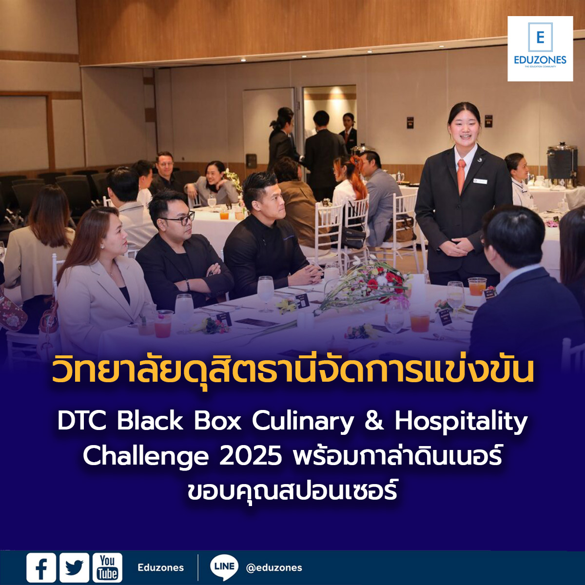 ระหว่างวันที่ 20-21 ธันวาคม 2568 วิทยาลัยดุสิตธานีได้จัดการแข่งขันภายใน DTC Black Box Culinary & Hospitality Challenge 2025 ขึ้น และเชิญแขกจากบริษัทสปอนเซอร์มาร่วมรับประทานอาหารในงาน A Mini Gala Dinner ณ ห้องศรีนครินทร์ฮอลล์ วิทยาลัยดุสิตธานี ในค่ำคืนวันที่ 21 ธันวาคม 2568 ที่ผ่านมา