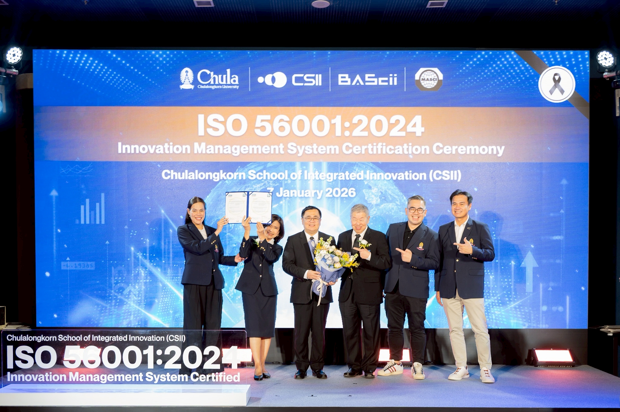 EZ Webmaster January 8, 2026 EZ Webmaster January 8, 2026 สถาบันนวัตกรรมบูรณาการแห่งจุฬาฯ สถาบันการศึกษาแห่งแรกในไทยและเอเชีย ได้รับการรับรองมาตรฐาน ISO 56001:2024 ระบบการจัดการนวัตกรรม สถาบันนวัตกรรมบูรณาการแห่งจุฬาฯ สถาบันการศึกษาแห่งแรกในไทยและเอเชีย ได้รับการรับรองมาตรฐาน ISO 56001:2024 ระบบการจัดการนวัตกรรม สถาบันนวัตกรรมบูรณาการแห่งจุฬาลงกรณ์มหาวิทยาลัย (Chulalongkorn School of Integrated Innovation: CSII) ได้ใบรับรองมาตรฐาน ISO 56001:2024 ระบบการจัดการนวัตกรรม จากสถาบันรับรองมาตรฐานไอเอสโอ (MASCI) นับเป็นสถาบันการศึกษาแห่งแรกในประเทศไทยและเอเชียที่ได้รับรองมาตรฐานดังกล่าว พิธีมอบใบรับรองมาตรฐาน ISO 56001:2024 จัดขึ้นเมื่อ วันพุธที่ 7 มกราคม 2569 ณ สถาบันนวัตกรรมบูรณาการแห่งจุฬาฯ ชั้น 1 อาคารเฉลิมราชกุมารี 60 พรรษา (อาคารจามจุรี 10) โดยมี ศ.ดร.วิเลิศ ภูริวัชร อธิการบดีจุฬาฯ เป็นผู้รับมอบใบรับรองมาตรฐานจากคุณจงรักษ์ โรจน์พลเสถียร ผู้อำนวยการสถาบันรับรองมาตรฐานไอเอสโอ (MASCI) และมี ศ. ภญ.ร.ต.อ.หญิง ดร.สุชาดา สุขหร่อง ผู้อำนวยการสถาบันนวัตกรรมบูรณาการ เป็นผู้ร่วมรับมอบ ศ.ดร.วิเลิศ ภูริวัชร อธิการบดีจุฬาฯ กล่าวว่า “การได้รับรองมาตรฐาน ISO ในครั้งนี้ถือเป็นของขวัญปีใหม่ที่สำคัญสำหรับชาวจุฬาฯ ซึ่งแสดงให้เห็นว่าหลักสูตรนี้ไม่เพียงแต่มีมาตรฐานระดับสากล แต่ยังสามารถสร้างอนาคตให้กับเยาวชนได้จริง มหาวิทยาลัยมุ่งเน้นการสร้างนวัตกร เพราะนวัตกรมาก่อนนวัตกรรม นวัตกรมีความสำคัญกว่าสิ่งที่ถูกสร้าง โดยให้นิสิตเติบโตท่ามกลางระบบนิเวศ (Ecosystem) ที่เต็มไปด้วยนวัตกรรม หลักสูตรนี้เน้นการบูรณาการ (Integrated) ระหว่างวิชาการและการปฏิบัติจริงทั้งในและต่างประเทศ เพื่อให้เยาวชนมีจิตวิญญาณของสตาร์ทอัพ (Start-up) และปัญญาในการสร้างสรรค์สิ่งใหม่ ๆ สำหรับโลกในอนาคต” ศ. ภญ. ร.ต.อ.หญิง ดร.สุชาดา สุขหร่อง ผู้อำนวยการสถาบันนวัตกรรมบูรณาการแห่งจุฬาฯ กล่าวว่า “มาตรฐาน ISO ที่ได้รับคือระบบการจัดการนวัตกรรม ซึ่งช่วยในการบ่มเพาะนิสิตอย่างเป็นลำดับขั้นตอน ตั้งแต่การริเริ่มไอเดีย การสร้างต้นแบบ (Prototype) การนำสินค้าเข้าสู่ตลาด (Go to Market) ไปจนถึงการระดมทุน การบูรณาการนวัตกรรมไม่ได้ทำเพื่อความล้ำสมัยเท่านั้น แต่ต้องสร้างผลกระทบอย่างแรง (Impact) ที่เป็นประโยชน์ต่อทั้งคนไทยและมวลมนุษยชาติทั่วโลก หลักสูตรนี้มุ่งเน้นการนำนวัตกรรมมาใช้ในเชิงพาณิชย์ เพื่อสร้างเงินทุนหมุนเวียนและช่วยให้ประเทศไทยหลุดพ้นจากความยากจน โดยตั้งเป้าให้นิสิตเป็นพลเมืองโลก (Global Citizen) และ ผู้นำแห่งอนาคต (Future Leaders)” การก้าวสู่มาตรฐานระดับโลกในครั้งนี้ เป็นผลสัมฤทธิ์จากนโยบายและการบริหารงาน