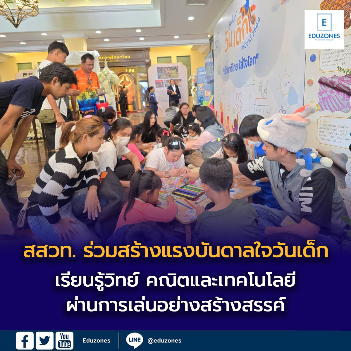EZ Webmaster January 14, 2026 EZ Webmaster January 14, 2026 สสวท. ร่วมสร้างแรงบันดาลใจวันเด็ก 2569 เรียนรู้วิทย์ คณิตและเทคโนโลยีผ่านการเล่นอย่างสร้างสรรค์ สถาบันส่งเสริมการสอนวิทยาศาสตร์และเทคโนโลยี (สสวท.) ร่วมจัดกิจกรรมในงานวันเด็กแห่งชาติ ประจำปี 2569 เมื่อวันที่ 10 มกราคม 2569 ณ อาคารราชวัลลภ กระทรวงศึกษาธิการ การจัดกิจกรรมงานวันเด็กแห่งชาติ ณ กระทรวงศึกษาธิการในครั้งนี้ ได้รับเกียรติจาก ร้อยเอก ธรรมนัส พรหมเผ่า รองนายกรัฐมนตรีและรัฐมนตรีว่าการกระทรวงเกษตรและสหกรณ์ เป็นประธานในพิธีเปิด ร่วมด้วย ศาสตราจารย์นฤมล ภิญโญสินวัฒน์ รัฐมนตรีว่าการกระทรวงศึกษาธิการ พร้อมด้วยนายองอาจ วงษ์ประยูร รัฐมนตรีช่วยว่าการกระทรวงศึกษาธิการ และคณะผู้บริหาร ศธ. ผู้ปกครอง นักเรียน นักศึกษา เข้าร่วมในกิจกรรมวันเด็กแห่งชาติของกระทรวงศึกษาธิการ ในครั้งนี้ ดร.สุพัตรา ผาติวิสันติ์ รองผู้อำนวยการ สสวท. เข้าร่วมกิจกรรมวันเด็กแห่งชาติ ประจำปี 2569 และนำทีมนิทรรศการ สสวท. จัดแสดงสื่อการเรียนรู้ผ่านการเล่น (Play-based Learning) และกิจกรรมสร้างสรรค์หลากหลายรูปแบบ อาทิ สื่ออินเตอร์แอคทีฟ การ์ดเกมเพื่อการเรียนรู้ และกิจกรรมออกแบบประดิษฐ์เข็มกลัดลายผ้าไทย เพื่อส่งเสริมทักษะการคิด วิเคราะห์ และจินตนาการของเด็กและเยาวชน และในโอกาสนี้ ดร.ชัยวุฒิ เลิศวนสิริวรรณ ผู้ช่วยผู้อำนวยการ สสวท. ได้ร่วมกิจกรรมและสนับสนุนการจัดการเรียนรู้ที่ช่วยปลูกฝังความสนใจด้านวิทยาศาสตร์ เทคโนโลยี และความคิดสร้างสรรค์ให้กับเด็กไทยอย่างยั่งยืน