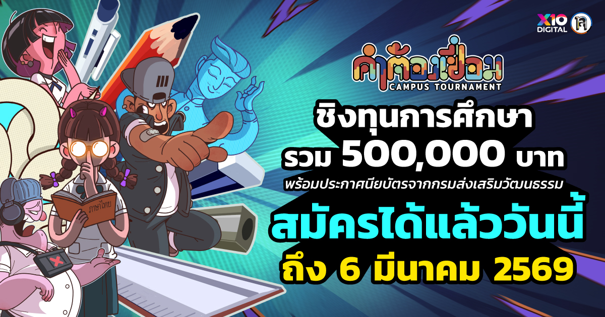 EZ Webmaster January 30, 2026 Blogนักศึกษานักเรียน คำต้องเชื่อม Campus Tournament ชิงทุนการศึกษา 500,000 บาท และประกาศณียบัตร EZ Webmaster January 30, 2026 คำต้องเชื่อม Campus Tournament ชิงทุนการศึกษา 500,000 บาท และประกาศณียบัตร เกมสุดฮิตจากเทพลีลา สู่การแข่งขันทัวร์นาเมนต์หาสุดยอดคำต้องเชื่อมรุ่นม.ปลาย – มหาลัย “คำต้องเชื่อม Campus Tournament” เกิดมาจากรายการ “คำต้องเชื่อม” ของช่อง ยกกำลัง เกมโชว์ที่ผู้เข้าแข่งขันต้อง พูด ‘คำนาม’ ต่อกันไปเรื่อย ๆ โดยแต่ละคำต้อง เชื่อมโยงกันในเชิงความหมาย กติกาเข้าใจง่าย ดูแป๊บเดียวก็เล่นตามได้ แต่เล่นจริงท้าทายมาก เพราะต้องคิดไว เลือกคำแม่น และทำให้เหตุผลมันต่อกันได้ตลอดเวลา ความพิเศษคือมันเป็น Edutainment ที่แทรกความรู้ภาษาไทยแบบเนียน ๆ ระหว่างความสนุก ตั้งแต่ การสะกดคำให้ถูกต้อง ประเภทคำ การออกเสียง ไปจนถึงความหมายของคำศัพท์ ที่หลายคนอาจไม่เคยรู้มาก่อน นอกจากนั้น เกมยังฝึก ทักษะการคิดเชื่อมโยงและตรรกะ อย่างเข้มข้น และถ้าใครรู้สึกว่าคำที่เชื่อมมาไม่สมเหตุสมผลก็สามารถ Challenge ได้ ทำให้ทั้งคนที่ถูกท้าและคนที่ท้า ต้องใช้ทักษะ อธิบาย โต้แย้ง และโน้มน้าว กันสด ๆ เหมือนย่อส่วนทักษะโต้วาทีอยู่ในเกม ในเวอร์ชัน Campus Tournament โปรเจกต์นี้จึงไม่ได้เป็นแค่การแข่งขันสนุก ๆ แต่เป็นเวทีที่สร้างคุณค่าให้หลายฝ่ายพร้อมกัน สำหรับ นักเรียน/นักศึกษา มันทำให้ “ความเก่งภาษาไทย” มีพื้นที่จริง ได้ฝึกคิดไว สื่อสารชัด และคุมสติภายใต้ความกดดัน สกิลที่ต่อยอดได้ทั้งเรียนและทำงาน สำหรับ โรงเรียน/มหาวิทยาลัย/อาชีวะ มันเป็นกิจกรรมที่สร้างความภาคภูมิใจและภาพลักษณ์ของสถาบันที่สนับสนุนการเรียนรู้เชิงสร้างสรรค์ พร้อมเชื่อมเครือข่ายระหว่างสถาบันในเวทีเดียว สำหรับ สังคม มันทำให้ภาษาไทยกลับมาร่วมสมัย เป็นพื้นที่สร้างสรรค์ที่คนอยากมีส่วนร่วม และยกระดับวัฒนธรรมการสื่อสารผ่านความสนุก และสำหรับ ผู้ชม มันคือคอนเทนต์ที่ดูแล้วลุ้น เล่นตามได้ทันที ได้ความรู้แบบไม่รู้ตัว เพราะนี่คือเกมที่ “ดูสนุก เล่นสนุก และเอาไปเล่นเองได้” โดยไม่ต้องใช้อุปกรณ์ใด ๆ และนั่นคือเหตุผลที่ Campus Tournament ไม่ได้เป็นเพียงการแข่งขันของเหล่านักเรียน แต่เป็นหนึ่งการแข่งขันที่ทำให้ภาษาไทย “มีชีวิต” ผ่านเสียงเชียร์และการมีส่วนร่วมของทุกคน ถ้าคุณเคยคิดว่า “ภาษาไทยน่าเบื่อ” โปรเจกต์นี้จะทำให้คุณเปลี่ยนใจ และถ้าคุณเคยรักภาษาไทยอยู่แล้ว…นี่คือเวทีที่ทำให้คุณ รักมันมากขึ้นกว่าเดิม เกณฑ์การสมัครแข่งขัน 1) คุณสมบัติผู้สมัคร เยาวชน อายุ 16–23 ปี กำลังศึกษาอยู่ในระดับ มัธยมศึกษาตอนปลาย (ม.4–ม.6) อุดมศึกษา (ปริญญา