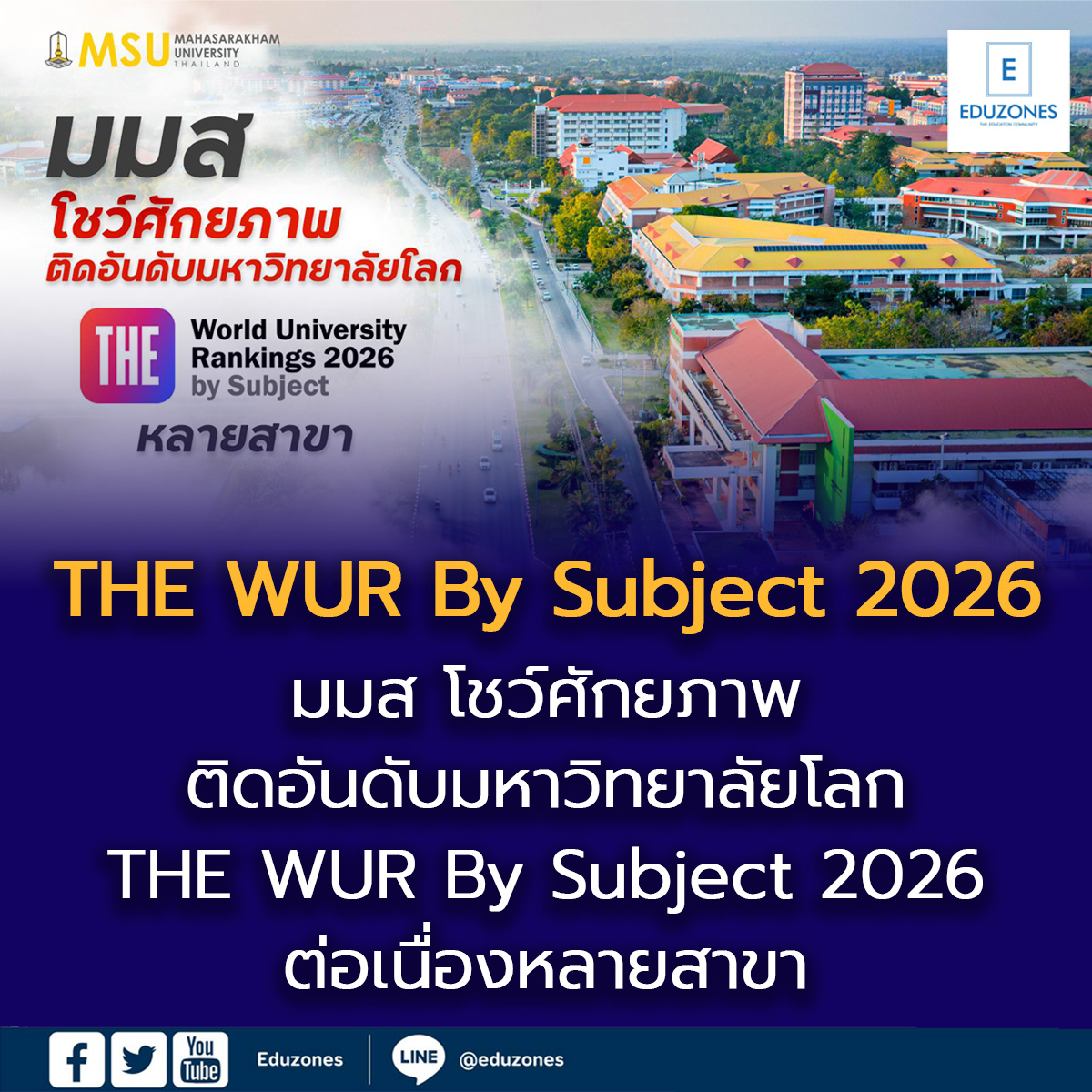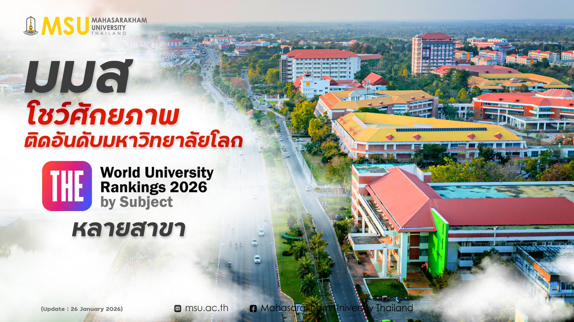 มมส โชว์ศักยภาพ ติดอันดับมหาวิทยาลัยโลก THE WUR By Subject 2026 ต่อเนื่องหลายสาขา
