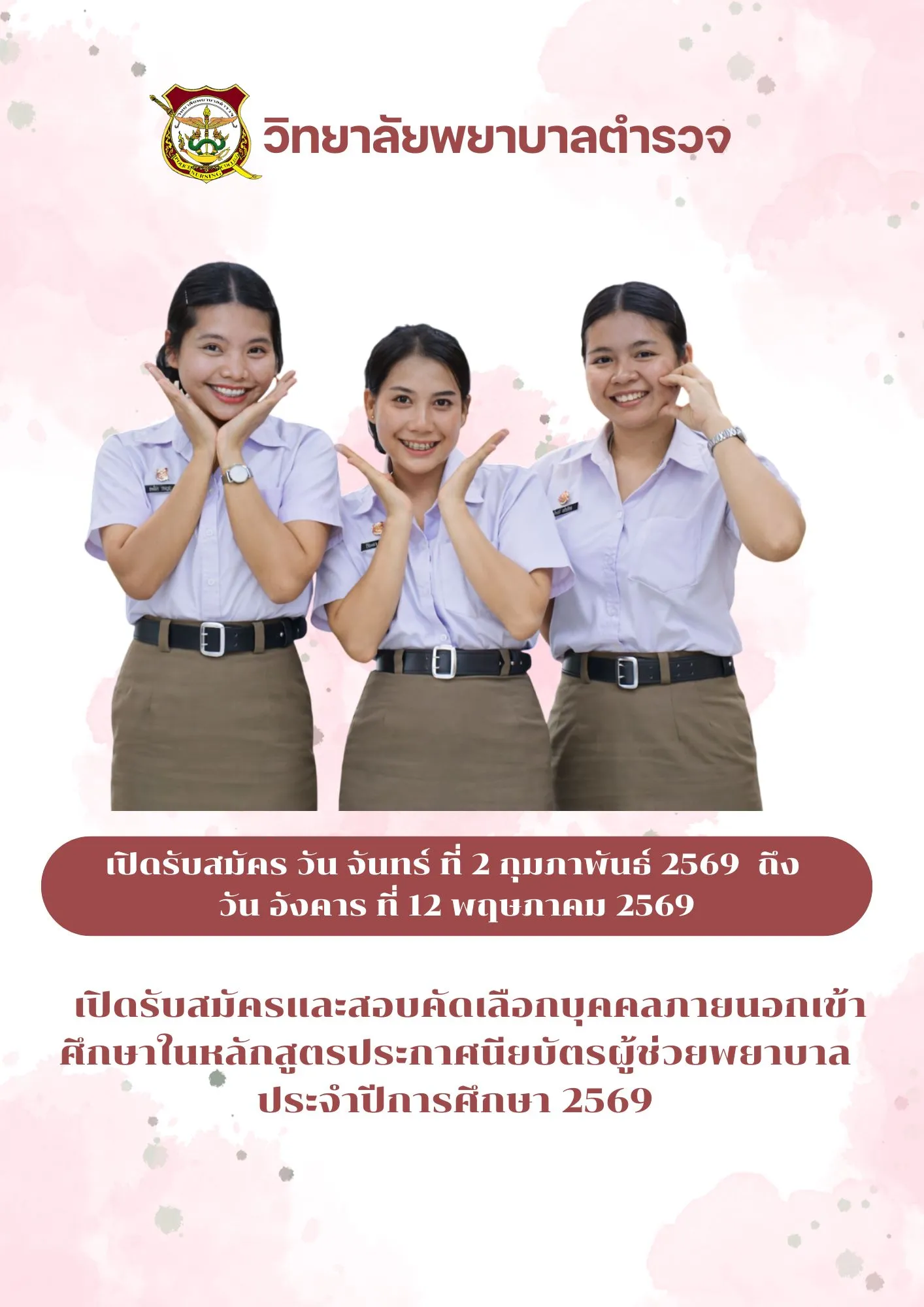 วิทยาลัยพยาบาลตำรวจ เปิดรับสมัครบุคคลภายนอก ศึกษาหลักสูตรประกาศนียบัตรผู้ช่วยพยาบาล ปีการศึกษา 2569
