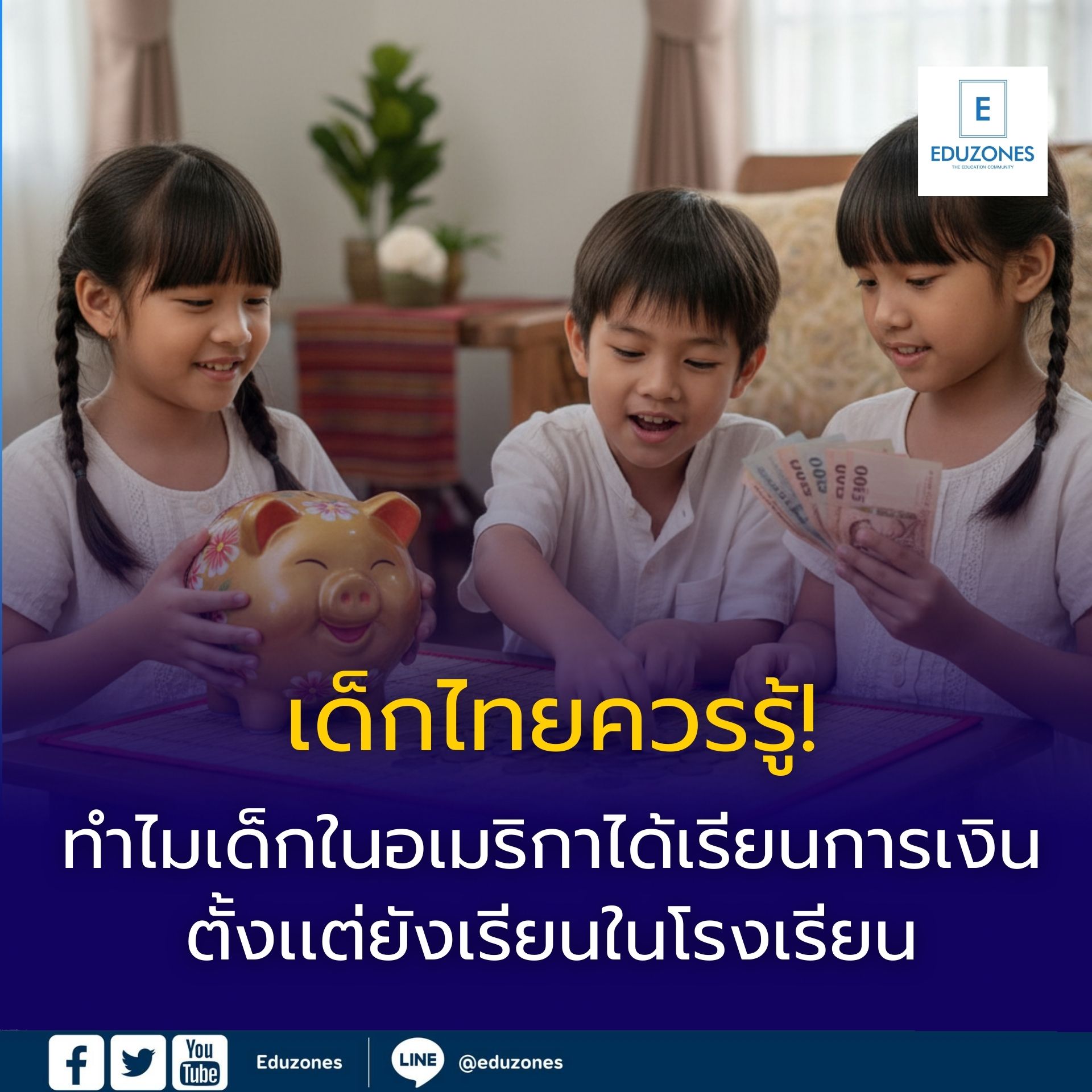 EZ Webmaster February 9, 2026 EZ Webmaster February 9, 2026 เด็กไทยควรรู้! ทำไมเด็กในอเมริกาได้เรียนการเงินตั้งเเต่ยังเรียนในโรงเรียน เด็กไทยควรรู้! ทำไมเด็กในอเมริกาได้เรียนการเงินตั้งเเต่ยังเรียนในโรงเรียน เคยสงสัยไหมว่า… ทำไมเราต้องมารู้วิธีคำนวณภาษี วิธีบริหารหนี้ หรือวิธีออมเงินเพื่อเกษียณในวันที่เรา ‘เจ็บตัว’ ไปแล้ว? ในขณะที่เด็กไทยหลายคนต้องเรียนรู้เรื่องเงินด้วยการลองผิดลองถูกเอง แต่ที่สหรัฐอเมริกา ‘ความรู้ทางการเงิน’ กำลังกลายเป็นอาวุธที่รัฐบาลยัดใส่มือเด็กก่อนจะส่งพวกเขาเข้าสู่โลกความจริง มาเจาะลึกกันว่าทำไมวิชานี้ถึงสำคัญจนขาดไม่ได้ และทำไมเด็กไทยถึงต้องเริ่มสนใจเรื่องนี้ตั้งแต่วันนี้! ทำไมต้องเรียน? ลดความเสี่ยงหนี้เสีย: เด็กที่ผ่านวิชานี้มีแนวโน้มจะเปรียบเทียบราคาและวางแผนการออมมากกว่าเด็กที่ไม่ได้เรียน แก้ปัญหาความเหลื่อมล้ำ: การสอนในโรงเรียนช่วยให้เด็กจากครอบครัวที่มีรายได้น้อยได้รับโอกาสในการเข้าถึงความรู้เรื่องการบริหารเงินเท่าเทียมกับเด็กจากครอบครัวฐานะดี การตัดสินใจที่ซับซ้อนขึ้น: โลกปัจจุบันมีทั้ง Cryptocurrency, การกู้ยืมเพื่อการศึกษา (Student Loans) ที่ซับซ้อน และการฉ้อโกงทางการเงินที่เพิ่มขึ้น การเรียนในโรงเรียนจึงเป็น “ภูมิคุ้มกัน” ที่จำเป็น สิ่งที่เด็กไทยควรรู้ 1. การวางแผนภาษี สิ่งที่ต้องรู้: รายได้ไม่ใช่เงินที่เราจะได้ใช้ทั้งหมด เมื่อมีรายได้ถึงเกณฑ์ต้องเสียภาษีให้รัฐ เป้าหมาย: เข้าใจว่า “ลดหย่อนภาษี” ทำอย่างไร (เช่น ซื้อประกัน, กองทุนรวม) เพื่อให้เราเหลือเงินเก็บในกระเป๋ามากขึ้นอย่างถูกกฎหมาย 2. ภูมิคุ้มกัน “ภัยไซเบอร์และการเงิน” สิ่งที่ต้องรู้: ในยุคที่แก๊งคอลเซ็นเตอร์และแอปดูดเงินระบาด เด็กไทยต้องรู้วิธีแยกแยะ “การลงทุนที่ดูดีเกินจริง” หรือ “แชร์ลูกโซ่” เป้าหมาย: ไม่ตกเป็นเหยื่อของคำว่า “กำไรดี การันตีผลตอบแทน” และรู้วิธีป้องกันข้อมูลส่วนตัวทางการเงิน 3. การบริหารงบประมาณ (50/30/20) สิ่งที่ต้องรู้: วิธีแบ่งเงินแบบง่ายๆ: – 50% ค่าใช้จ่ายจำเป็น (กิน, เดินทาง) – 30% ความต้องการส่วนตัว (เที่ยว, ช้อปปิ้ง) – 20% เงินออมและลงทุน เป้าหมาย: เพื่อให้มีเงินใช้เพียงพอตลอดเดือนโดยไม่ต้อง “หมุนเงิน” หรือกู้นอกระบบ ประโยชน์ที่รับจากการเรียนเรื่องการเงิน มีภูมิคุ้มกันไม่ตกเป็นเหยื่อมิจฉาชีพ : แยกออกว่าอันไหนคือลงทุนจริง อันไหนคือแชร์ลูกโซ่ ไม่เสียค่าให้มิจฉาชีพง่ายๆ ใช้ชีวิตแบบ “ไม่ต้องกุมขมับ”: รู้วิธีจัดการหนี้และภาษี จบมาทำงานแล้วไม่ต้องนั่งเครียดเรื่องเงินชนเดือนเหมือนผู้ใหญ่หลายๆ คน อิสระในการเลือกช