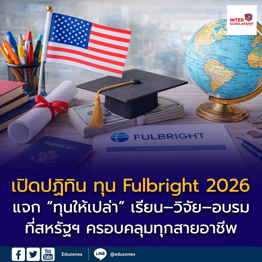 EZ Webmaster February 16, 2026 EZ Webmaster February 16, 2026 Fulbright Thailand เปิดปฏิทินทุนปี 2026 แจก “ทุนให้เปล่า” เรียน–วิจัย–อบรมที่สหรัฐฯ ครอบคลุมทุกสายอาชีพ Fulbright Thailand เปิดปฏิทินทุนปี 2026 แจก “ทุนให้เปล่า” เรียน–วิจัย–อบรมที่สหรัฐฯ ครอบคลุมทุกสายอาชีพ มูลนิธิการศึกษาไทย-อเมริกัน (Fulbright Thailand) ประกาศปฏิทินการเปิดรับสมัครทุนการศึกษาประจำปี 2026 เปิดโอกาสให้คนไทยทุกสาขาอาชีพ ไม่ว่าจะเป็นนักศึกษา ครู อาจารย์ ข้าราชการ บุคลากรภาครัฐ–เอกชน และผู้นำองค์กร ได้รับทุนสนับสนุนแบบ “ให้เปล่า (Full Grant)” เพื่อไปศึกษาต่อ ทำวิจัย หรือฝึกอบรม ณ สหรัฐอเมริกา จุดเด่นของทุน Fulbright คือ ไม่มีข้อผูกมัดเรื่องการใช้เงินคืน มีเพียงเงื่อนไขให้ผู้รับทุนเดินทางกลับมาพำนักในประเทศไทยหลังจบโครงการ เพื่อนำองค์ความรู้มาพัฒนาประเทศ ในปี 2026 นี้ มีทุนเปิดรับสมัครตลอดทั้งปี ครอบคลุมหลายกลุ่มเป้าหมาย ดังนี้ 📢 มกราคม (JAN) 1) Thai Graduate Scholarship (TGS) ทุนเรียนต่อระดับปริญญาโท/เอก ในสหรัฐฯ (ยกเว้นสาขาแพทยศาสตร์/พยาบาลศาสตร์ที่มีการปฏิบัติคลินิก) เหมาะสำหรับ: ผู้จบปริญญาตรี GPAX 3.00 ขึ้นไป หรือจบปริญญาโท GPAX 3.50 ขึ้นไป มีผลสอบภาษาอังกฤษตามเกณฑ์ สิทธิประโยชน์: ค่าเล่าเรียน ค่าครองชีพ ตั๋วเครื่องบินไป–กลับ ประกันสุขภาพ 🔎 รายละเอียด: www.fulbrightthai.org/grants-for-thais/thai-graduate-scholarship-program-tgs 2) Teaching Excellence and Achievement (TEA) ทุนอบรมระยะสั้น 6 สัปดาห์ สำหรับครูมัธยมศึกษา สาขาที่เปิดรับ:ภาษาอังกฤษ คณิตศาสตร์ วิทยาศาสตร์ สังคมศึกษา และการศึกษาพิเศษ คุณสมบัติ: มีประสบการณ์สอนอย่างน้อย 5 ปี 🔎 รายละเอียด: www.fulbrightthai.org/grants-for-thais/teaching-excellence-and-achievement-program-tea 📢 มีนาคม (MAR) 3) Foreign Language Teaching Assistant (FLTA) ทุน 9 เดือน ไปเป็นผู้ช่วยสอนภาษาไทยในมหาวิทยาลัยสหรัฐฯ เหมาะสำหรับ: ครูสอนภาษาอังกฤษ ผู้จบใหม่สาขาที่เกี่ยวข้อง อายุไม่เกิน 35 ปี มีภาวะผู้นำ สิทธิประโยชน์: เบี้ยเลี้ยงรายเดือน ที่พัก ลงเรียนรายวิชาฟรี สร้างเครือข่ายนานาชาติ 🔎 รายละเอียด: www.fulbrightthai.org/grants-for-thais/foreign-language-teaching-assistantship-program-flta 📢 เมษายน (APR) 4) Hubert H. Humphrey Fellowship (HHH) ทุนฝึกอบรม 10 เดือน (Non-degree) เน้นด้านนโยบายและการบริหารจัดการ เหมาะสำหรับ: ข้าราชการ พนักงานรัฐวิสาหกิจ บุคลากรภาคเอกชนระดับบริหาร มีประสบการณ์ทำงานอย่างน้อย 5 ปี 🔎 รายละเอียด: www.fulbrightthai.org/grants-for-thais/hubert-h-humphry-fellowship-program-hhh-humphrey 📢 มิถุนายน (JUN) 5) Junior Research Scholar (JRS) ทุนวิจัย 6 เดือน สำหรับนักศึกษา ป.เอก คุณสมบัติ: กำลังศึกษา ป.เอกในไทย ผ่าน Qualifying Exam แล้ว 🔎 รายละเอียด: www.fulbrightthai.org/grants-for-thais/junior-research-scholarship-program-jrs 6) Thai Visiting Scholar (TVS) ทุนสำหรับอาจารย์มหาวิทยาลัยหรือนักวิจัยอาวุโส ไปทำวิจัยหรือสอนในสหรัฐฯ 🔎 ติดตามประกาศ: www.fulbrightthai.org/grants/grants-for-thais 📢 ตุลาคม (OCT) 7) U.S.–ASEAN Visiting Scholar (USAS) ทุนวิจัยด้านความสัมพันธ์สหรัฐฯ–อาเซียน เหมา
