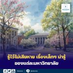 รู้ไว้ไม่เสียหาย เรื่องเล็กๆ น่ารู้ของแต่ละมหาวิทยาลัย EZ WebmasterFebruary 16, 2026 รู้ไว้ไม่เสียหาย เรื่องเล็กๆ น่ารู้ของแต่ละมหาวิทยาลัย มหาวิทยาลัยแต่ละแห่งไม่ได้มีแค่ชื่อเสียงหรือคณะเด่นเท่านั้น แต่ยังมีเรื่องเล็ก ๆ น้อย ๆ ที่หลายคนอาจมองข้าม ทั้งวัฒนธรรมการเรียน การใช้ชีวิตในรั้วมหาวิทยาลัย สิ่งอำนวยความสะดวก ไปจนถึงบรรยากาศรอบ ๆ ที่ส่งผลต่อชีวิตนักศึกษาโดยตรง เรื่องเหล่านี้แม้จะดูเล็กน้อย แต่รู้ไว้ก่อนตัดสินใจเลือกเรียน ก็ช่วยให้เตรียมตัวและปรับตัวได้ง่ายขึ้นไม่น้อย… AIS Academy จับมือ BOI เปิด 9 คอร์สสกิลดิจิทัลมาแรง ให้คนไทยเรียนฟรี! รับ “Digital Badge” ทันที หนุนไทยปั้นกำลังคน Digital Talents สู่ศูนย์กลางเทคของอาเซียน EZ WebmasterFebruary 16, 2026 ด้วยความเชื่อว่า “คน” คือพลังสำคัญที่สุดของการขับเคลื่อนประเทศ AIS Academy จึงเดินหน้า “ภารกิจคิดเผื่อเพื่อคนไทย” ผนึกกำลังกับ สำนักงานคณะกรรมการส่งเสริมการลงทุน (BOI) และพันธมิตรบริษัทเทคชั้นนำระดับโลก อย่าง HUAWEI และ Microsoft เปิดตัวโครงการ “AIS Academy…