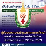 สถาบันการพยาบาลศรีสวรินทิรา สภากาชาดไทย เปิดรับสมัคร “หลักสูตรผู้ช่วยพยาบาล (ทุนสภากาชาดไทย)” ปีการศึกษา 2569