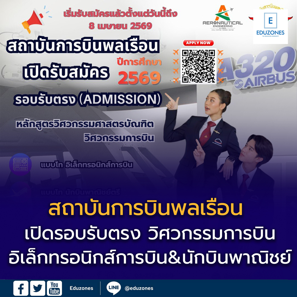EZ Webmaster March 17, 2026 EZ Webmaster March 17, 2026 สถาบันการบินพลเรือน เปิดรับสมัครปี 2569 รอบรับตรง ชวนเด็กไทยล่าฝันสู่อุตสาหกรรมการบิน สถาบันการบินพลเรือน เปิดรับสมัครปี 2569 รอบรับตรง ชวนเด็กไทยล่าฝันสู่อุตสาหกรรมการบิน อีกหนึ่งข่าวดีสำหรับน้อง ๆ ที่มีความฝันอยากทำงานในสายการบินและอุตสาหกรรมการบิน เมื่อ สถาบันการบินพลเรือน ประกาศเปิดรับสมัครนักศึกษาใหม่ ประจำปีการศึกษา 2569 ในรอบ รับตรง (Admission) สำหรับผู้ที่สนใจศึกษาต่อในหลักสูตรด้านการบินโดยตรง การเปิดรับสมัครครั้งนี้ถือเป็นโอกาสสำคัญสำหรับเยาวชนไทยที่ต้องการก้าวเข้าสู่เส้นทางอาชีพด้านการบิน ซึ่งเป็นหนึ่งในสายงานที่ต้องใช้ทั้งความรู้ทางวิชาการ ทักษะเฉพาะทาง และความพร้อมในระดับวิชาชีพ เปิดรับหลักสูตรวิศวกรรมศาสตรบัณฑิต สาขาวิชาวิศวกรรมการบิน สถาบันการบินพลเรือนเปิดรับสมัครในหลักสูตร วิศวกรรมศาสตรบัณฑิต สาขาวิชาวิศวกรรมการบิน โดยแบ่งออกเป็น 2 แขนงสำคัญ ได้แก่ อิเล็กทรอนิกส์การบิน (Avionics) นักบินพาณิชย์ตรี (Commercial Pilot) ทั้ง 2 แขนงถือเป็นสาขาที่มีบทบาทสำคัญต่ออุตสาหกรรมการบินในปัจจุบันและอนาคต แขนง อิเล็กทรอนิกส์การบิน มุ่งพัฒนาผู้เรียนให้มีความรู้ด้านระบบอิเล็กทรอนิกส์ อุปกรณ์นำร่อง และระบบควบคุมต่าง ๆ บนอากาศยาน ขณะที่แขนง นักบินพาณิชย์ตรี เป็นเส้นทางสำหรับผู้ที่มีเป้าหมายชัดเจนในการก้าวสู่การเป็นนักบินในสายการบินพาณิชย์ โอกาสสำหรับคนที่อยากทำงานสายการบิน อุตสาหกรรมการบินยังคงเป็นหนึ่งในสายอาชีพที่ได้รับความสนใจจากนักเรียนจำนวนมาก เพราะมีความหลากหลายของอาชีพ ทั้งในด้าน นักบิน วิศวกรการบิน เจ้าหน้าที่ควบคุมระบบอากาศยาน บุคลากรสนับสนุนด้านเทคนิคการบิน การเลือกเรียนในสถาบันเฉพาะทางอย่าง สถาบันการบินพลเรือน จึงเป็นอีกหนึ่งจุดเริ่มต้นสำคัญสำหรับผู้ที่ต้องการเข้าสู่อาชีพในสายนี้อย่างจริงจัง กำหนดการรับสมัครปี 2569 ผู้ที่สนใจสามารถสมัครได้ตั้งแต่วันนี้จนถึง 8 เมษายน 2569 โดยมีกำหนดการสำคัญ ดังนี้ เปิดรับสมัคร: ตั้งแต่วันนี้ – 8 เมษายน 2569 สอบข้อเขียน: 20 เมษายน 2569 สอบสัมภาษณ์: 27 เมษายน 2569 สมัครออนไลน์ได้ทันที ผู้สมัครสามารถดำเนินการสมัครผ่านระบบออนไลน์ของสถาบันการบินพลเรือนได้โดยตรงที่เว็บไซต์ https://admission.catc.or.th/home นอกจากนี้ ผู้ที่ต้องการสอบถามรายละเอียดเพิ่มเติม สามารถติดต่อได้ที่ โทรศัพท์: 02-272-5300 LINE: @aero.catc