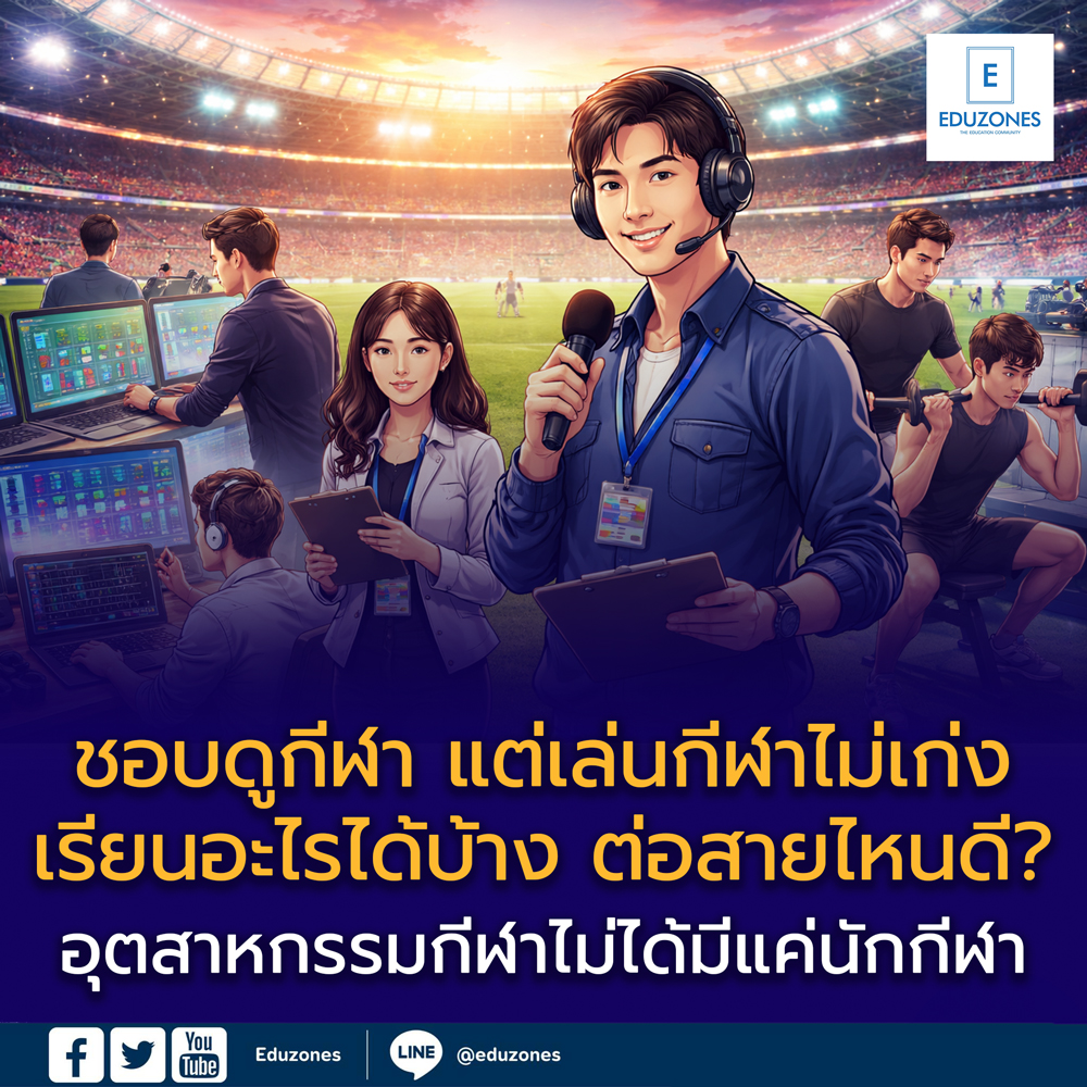 EZ Webmaster March 20, 2026 EZ Webmaster March 20, 2026 ชอบดูกีฬา แต่เล่นกีฬาไม่เป็น เรียนอะไรได้บ้าง? ชอบดูกีฬา แต่เล่นกีฬาไม่เป็น เรียนอะไรได้บ้าง? ในมุมมองของหลายคน “สายกีฬา” มักถูกผูกติดกับภาพของนักกีฬาที่ต้องมีทักษะทางร่างกายโดดเด่น แข่งขันเก่ง และมีผลงานในสนาม แต่ในความเป็นจริงแล้ว อุตสาหกรรมกีฬาในปัจจุบันเติบโตอย่างมาก และเปิดโอกาสให้กับคนหลากหลายความสามารถ ไม่จำเป็นต้องเป็นนักกีฬามืออาชีพก็สามารถทำงานในสายนี้ได้ สำหรับนักเรียนระดับมัธยมปลายที่ “ชอบดูกีฬา” ติดตามการแข่งขันอย่างสม่ำเสมอ วิเคราะห์เกมได้ หรือมีความสนใจในโลกของกีฬา บทความนี้จะช่วยให้เห็นภาพว่า ยังมีเส้นทางการเรียนและอาชีพใดบ้างที่สามารถต่อยอดจากความชอบนี้ได้ อุตสาหกรรมกีฬา: มากกว่าการแข่งขันในสนาม กีฬาในปัจจุบันไม่ได้เป็นเพียงกิจกรรมเพื่อสุขภาพหรือความบันเทิงเท่านั้น แต่เป็น “อุตสาหกรรม” ที่เกี่ยวข้องกับหลายภาคส่วน เช่น สื่อ ธุรกิจ เทคโนโลยี สุขภาพ และการจัดการองค์กร เบื้องหลังการแข่งขันหนึ่งแมตช์ ประกอบไปด้วยทีมงานจำนวนมาก ตั้งแต่นักข่าว ผู้บรรยาย ผู้จัดงาน นักวิเคราะห์ข้อมูล ไปจนถึงผู้เชี่ยวชาญด้านร่างกายและสุขภาพของนักกีฬา ดังนั้น แม้จะไม่ได้มีทักษะในการเล่นกีฬา ก็ยังสามารถมีบทบาทในวงการนี้ได้ แนวทางการเรียนสำหรับคนที่ชอบกีฬา 1. นิเทศศาสตร์และสื่อสารมวลชน (สายกีฬา) สาขานี้เหมาะสำหรับผู้ที่สนใจการเล่าเรื่อง การสื่อสาร และการผลิตสื่อเกี่ยวกับกีฬา นักเรียนจะได้เรียนรู้การเขียนข่าว การรายงาน การวิเคราะห์เกม และการสร้างคอนเทนต์ในรูปแบบต่าง ๆ อาชีพที่เกี่ยวข้อง ผู้บรรยายกีฬา นักข่าวกีฬา ผู้ผลิตคอนเทนต์ด้านกีฬา 2. บริหารธุรกิจ (การจัดการกีฬา) เหมาะสำหรับผู้ที่สนใจการบริหารจัดการและการทำงานเบื้องหลัง เช่น การจัดการแข่งขันกีฬา การบริหารสโมสร หรือการทำการตลาดกีฬา อาชีพที่เกี่ยวข้อง ผู้จัดการแข่งขันกีฬา ผู้จัดการทีม/สโมสร นักการตลาดกีฬา 3. วิทยาศาสตร์การกีฬา แม้จะไม่ใช่นักกีฬา แต่หากสนใจเรื่องร่างกายมนุษย์ การออกกำลังกาย และการพัฒนาศักยภาพของนักกีฬา สาขานี้ถือเป็นอีกทางเลือกหนึ่ง อาชีพที่เกี่ยวข้อง นักวิทยาศาสตร์การกีฬา ผู้ฝึกสอน (Trainer) นักกายภาพบำบัด 4. เทคโนโลยีและการวิเคราะห์ข้อมูลกีฬา ในยุคดิจิทัล ข้อมูลมีบทบาทสำคัญอย่างมากในวงการกีฬา เช่น การวิเคราะห์ฟอร์มผู้เล่น การวางกลยุทธ์การแข่งขัน รวมถึงการพัฒนา E-sports อาชีพที่เกี่ยวข้อง นักวิเคราะห์ข้อมูลกีฬา นักวิเคราะห์เกม/แท็กติก ผู้พัฒนาและทำงานในอุตสาหกรรม E-sports 5. สายภาษาและ