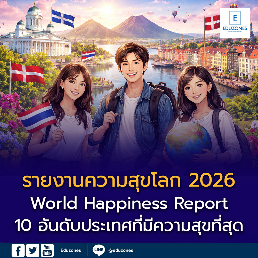 EZ Webmaster March 20, 2026 EZ Webmaster March 20, 2026 รายงานความสุขโลก 2026 (World Happiness Report) 10 อันดับประเทศที่มีความสุขที่สุดในโลก และประเทศไทยอยู่อันดับไหน? รายงานความสุขโลก 2026 (World Happiness Report) 10 อันดับประเทศที่มีความสุขที่สุด และประเทศไทยอยู่อันดับไหน? ในยุคที่โลกเผชิญความเปลี่ยนแปลงทั้งเศรษฐกิจ สังคม และเทคโนโลยี“ความสุขของประชาชน” กลายเป็นตัวชี้วัดสำคัญของคุณภาพชีวิตในแต่ละประเทศ รายงาน World Happiness Report ประจำปี 2568–2569จึงเป็นหนึ่งในดัชนีระดับโลกที่สะท้อนว่า ประเทศใดมี “คุณภาพชีวิตที่ดี” มากที่สุด World Happiness Report คืออะไร? รายงานนี้จัดทำโดยเครือข่ายนักวิจัยระดับโลก ร่วมกับองค์การสหประชาชาติโดยใช้ข้อมูลจาก Gallup World Poll ครอบคลุมกว่า 140 ประเทศ การจัดอันดับอิงจาก 6 ปัจจัยหลัก ได้แก่ รายได้ต่อหัว การสนับสนุนทางสังคม สุขภาพและอายุขัย เสรีภาพในการใช้ชีวิต ความเอื้อเฟื้อ การรับรู้เรื่องคอร์รัปชัน 🌍 10 อันดับประเทศที่มีความสุขที่สุดในโลก (ปี 2569) จากรายงานล่าสุด ประเทศที่มีความสุขสูงสุดยังคงกระจุกตัวอยู่ใน “ยุโรปเหนือ” และประเทศพัฒนาแล้ว Top 10 โลก ได้แก่ 🇫🇮 ฟินแลนด์ 🇩🇰 เดนมาร์ก 🇮🇸 ไอซ์แลนด์ 🇸🇪 สวีเดน 🇳🇱 เนเธอร์แลนด์ 🇨🇷 คอสตาริกา 🇳🇴 นอร์เวย์ 🇮🇱 อิสราเอล 🇱🇺 ลักเซมเบิร์ก 🇲🇽 เม็กซิโก 📌 ฟินแลนด์ครองอันดับ 1 ต่อเนื่องหลายปีสะท้อนความแข็งแกร่งด้านรัฐสวัสดิการ ความไว้วางใจในสังคม และคุณภาพชีวิตโดยรวม 🇹🇭 แล้วประเทศไทยอยู่อันดับไหน? ในรายงานล่าสุด 👉 ประเทศไทยอยู่ อันดับที่ 49 ของโลก👉 ขยับขึ้นจากอันดับ 58 ในปีก่อน (+9 อันดับ) นอกจากนี้ยังมีข้อมูลสำคัญว่า ไทยเป็น อันดับ 3 ในอาเซียน มีคะแนนเฉลี่ยประมาณ 6.22 คะแนน ภาพสะท้อน “ความสุขของไทย” แม้อันดับจะยังไม่ติด Top 20 แต่ไทยมีพัฒนาการที่ดีขึ้นอย่างชัดเจน จุดเด่นของไทย ความสัมพันธ์ในครอบครัวและสังคมเข้มแข็ง วิถีชีวิตเรียบง่าย เข้าถึงความพึงพอใจได้ คุณภาพชีวิตผู้สูงอายุอยู่ในระดับดี สิ่งที่ยังต้องพัฒนา รายได้เฉลี่ยต่อหัว ความเหลื่อมล้ำ ความเชื่อมั่นต่อระบบและคอร์รัปชัน “ความสุข” ไม่ใช่เรื่องไกลตัว รายงานนี้สะท้อนว่าประเทศที่มีความสุขสูง ไม่ได้รวยที่สุดเสมอไปแต่เป็นประเทศที่ “ดูแลคุณภาพชีวิตประชาชนได้ดี” สำหรับนักเรียนและผู้ปกครอง นี่คือบทเรียนสำคัญว่า 👉 ความสำเร็จในชีวิต ไม่ได้วัดแค่รายได้👉 แต่รวมถึง “ความสมดุลของชีวิต” ด้วย สรุป รายงานความสุขโลกปี 2569 แสดงให้เห็นว่าโลกกำลังให้ความสำคัญกับ “ความสุข” มากขึ้นในระดับนโยบาย ฟินแลนด์ยังคงเป็นประเทศที่มีความสุขที่สุดในโลก ไทยอยู่อันดับ 49 และมีแนวโน้มดีขึ้น สิ่งสำคัญที่สุด ไม่ใช่แค่ก