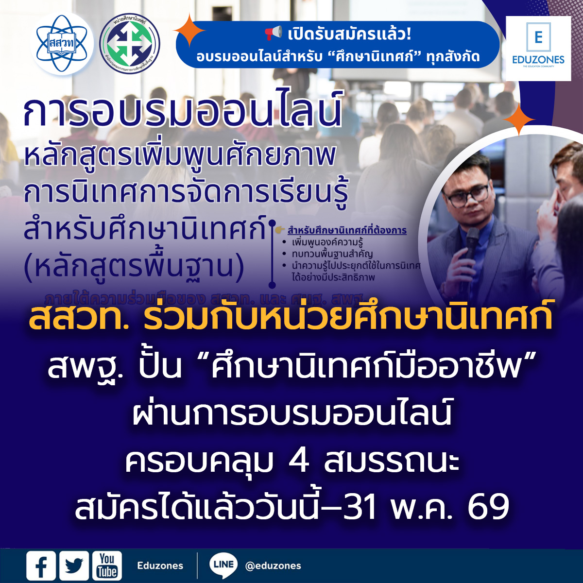 สสวท. ร่วมกับหน่วยศึกษานิเทศก์ สพฐ. ปั้น “ศึกษานิเทศก์มืออาชีพ” ผ่านการอบรมออนไลน์ ครอบคลุม 4 สมรรถนะ สมัครได้แล้ววันนี้–31 พ.ค. 69