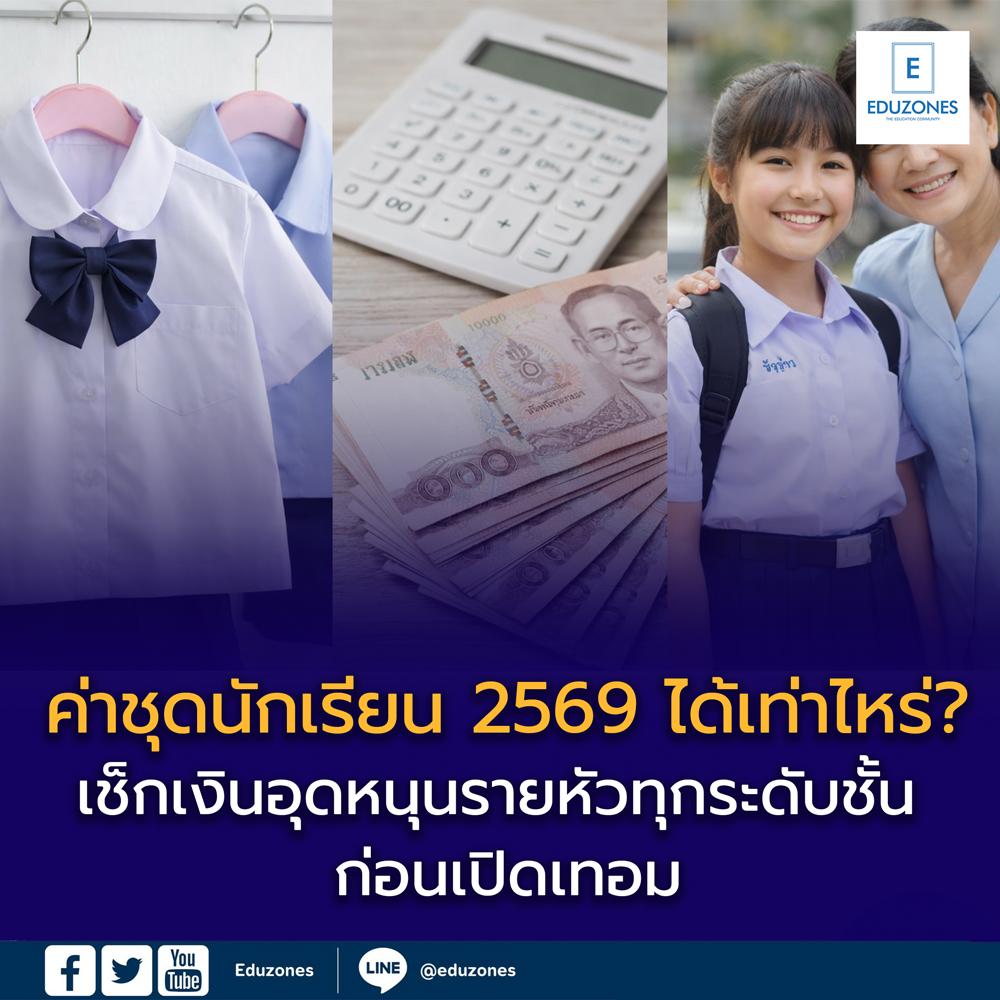 EZ Webmaster April 19, 2026 EZ Webmaster April 19, 2026 ค่าชุดนักเรียน 2569 ได้เท่าไหร่? เช็กเงินอุดหนุนรายหัวทุกระดับชั้น ก่อนเปิดเทอม ค่าชุดนักเรียน 2569 ได้เท่าไหร่? เช็กเงินอุดหนุนรายหัวทุกระดับชั้น ก่อนเปิดเทอม ใกล้เปิดเทอมแล้ว! ผู้ปกครองหลายท่านเริ่มเตรียมงบสำหรับค่าชุดนักเรียน ค่าอุปกรณ์ และค่าใช้จ่ายต่าง ๆ เรามาเช็กกันให้ชัด ๆ ว่าปีการศึกษา 2569 รัฐบาลช่วยออกค่าชุดนักเรียนให้เท่าไหร่ และมีอะไรที่ถัวจ่ายได้บ้าง เงินอุดหนุนรายหัวคืออะไร? เงินอุดหนุนรายหัวคือเงินงบประมาณ งบเงินอุดหนุนประเภทเงินอุดหนุนทั่วไป ที่เป็นค่าใช้จ่ายในการจัดการศึกษาขั้นพื้นฐาน เพื่อให้เกิดประโยชน์สูงสุดในการพัฒนานักเรียน โดยอุดหนุนให้สถานศึกษาตามรายหัวของนักเรียนแต่ละระดับการศึกษา ในปีการศึกษา 2569 นับเป็นปีที่สี่และปีสุดท้ายของการปรับเพิ่มอัตราเงินอุดหนุนแบบขั้นบันได ตามมติคณะรัฐมนตรีเมื่อวันที่ 26 กรกฎาคม 2565 ที่กำหนดให้ทยอยปรับเพิ่มอย่างต่อเนื่อง 4 ปีงบประมาณ ตั้งแต่ปี 2566 ถึง 2569 ค่าเครื่องแบบนักเรียน 2569 แต่ละระดับชั้นได้เท่าไหร่? อัตราเงินอุดหนุนค่าเครื่องแบบนักเรียนในปีการศึกษา 2568–2569 กำหนดไว้ดังนี้ ระดับอนุบาล 325 บาท ประถมศึกษา 400 บาท มัธยมศึกษาตอนต้น 500 บาท มัธยมศึกษาตอนปลาย 550 บาท และระดับ ปวช.1–3 ที่จัดโดยสถานประกอบการ 950 บาท โดยเงินส่วนนี้จะจ่ายให้ผู้ปกครองหรือนักเรียน ปีละ 1 ครั้ง เพื่อนำไปจัดซื้อเครื่องแบบซึ่งประกอบด้วย เสื้อ กางเกง และกระโปรง ค่าอุปกรณ์การเรียน 2569 ได้เท่าไหร่? ค่าอุปกรณ์การเรียนเป็นเงินที่รัฐจัดสรรให้ผู้ปกครองโดยตรง เพื่อนำไปซื้ออุปกรณ์ที่จำเป็น เช่น สมุด ปากกา ดินสอ ยางลบ ไม้บรรทัด และอุปกรณ์อื่น ๆ โดยจ่ายเป็นรายภาคเรียน โดยอัตราสำหรับแต่ละระดับชั้นมีดังนี้ ระดับมัธยมศึกษาตอนต้น มัธยมศึกษาตอนปลาย และ ปวช.1–3 ได้รับ 520 บาทต่อคนต่อปี หรือ 260 บาทต่อภาคเรียน ถัวจ่ายได้ด้วย! รู้ไว้ประหยัดได้มากขึ้น สิ่งที่ผู้ปกครองหลายคนอาจยังไม่รู้คือ ผู้ปกครองหรือนักเรียนสามารถถัวจ่ายระหว่างค่าเครื่องแบบนักเรียนและค่าอุปกรณ์การเรียนได้ กรณีนักเรียนมีชุดนักเรียนเพียงพอแล้ว สามารถนำเงินไปซื้อเข็มขัด รองเท้า ถุงเท้า ชุดลูกเสือ/เนตรนารี/ยุวกาชาด/ผู้บำเพ็ญประโยชน์ ชุดกีฬา ชุดฝึกงาน ชุดประจำท้องถิ่น และอุปกรณ์การเรียนที่จำเป็นได้ บวกกับนโยบายใหม่ของ ศธ. ปีนี้ นอกจากเงินอุดหนุนรายหัวที่มีอยู่เดิม ปีการศึกษา 2569 ยังมีมาตรการพิเศษจากกระทรวงศึกษาธิการที่ประกาศผ่อนปรนระเบียบเครื่องแต่งกาย ได้แก่ อนุญาตให้ใช้ชุดเดิมได้โดยไม่บังคับซื้อใหม่, ไม
