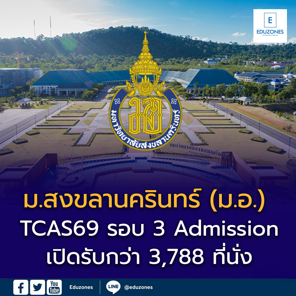 EZ Webmaster April 20, 2026 EZ Webmaster April 20, 2026 TCAS69 รอบ 3 Admission ม.สงขลานครินทร์ (ม.อ.) เปิดรับกว่า 3,788 ที่นั่ง สมัคร 6–12 พ.ค. 69 TCAS69 รอบ 3 Admission ม.สงขลานครินทร์ (ม.อ.) เปิดรับกว่า 3,788 ที่นั่ง สมัคร 6–12 พ.ค. 69 มหาวิทยาลัยสงขลานครินทร์ประกาศเปิดรับสมัครในรอบ 3 Admission ประจำปีการศึกษา 2569 รับนักศึกษาใหม่รวมกว่า 3,788 ที่นั่ง ทั้งสายวิทยาศาสตร์ สายสังคม สายอาชีพ และสาขาวิชาต่าง ๆ กระจายไปยังทุกวิทยาเขต ได้แก่ หาดใหญ่ ปัตตานี ภูเก็ต สุราษฎร์ธานี และตรัง กำหนดการสำคัญที่ต้องจดไว้เลย ขั้นตอน วันที่ เปิดรับสมัคร 6–12 พฤษภาคม 2569 ประกาศผลครั้งที่ 1 20 พฤษภาคม 2569 ยืนยันสิทธิ์ / ขอประมวลผลครั้งที่ 2 20–21 พฤษภาคม 2569 ประกาศผลครั้งที่ 2 + รายชื่อผู้มีสิทธิ์สัมภาษณ์ 26 พฤษภาคม 2569 วันสละสิทธิ์ 27 พฤษภาคม 2569 สอบสัมภาษณ์ / ตรวจร่างกาย (บางสาขา) 2 มิถุนายน 2569 ประกาศรายชื่อผู้มีสิทธิ์เข้าศึกษา 6 มิถุนายน 2569 สมัครผ่าน: student.mytcas.com เท่านั้น ตรวจสอบข้อมูลเพิ่มเติม: admission.psu.ac.th คุณสมบัติทั่วไปของผู้สมัคร ผู้สมัครต้องสำเร็จการศึกษาหรืออยู่ในระหว่างการศึกษาชั้น ม.6 หรือเทียบเท่า (รวมถึง ปวช.3 และ กศน. สำหรับบางคณะ) และต้องเป็นผู้ที่ไม่เคยยืนยันสิทธิ์ในระบบ TCAS69 รอบก่อนหน้า โดยคะแนนที่ใช้ในการพิจารณาคือ TGAT, TPAT และ A-Level เจาะลึกเกณฑ์คณะดัง แยกตามสาย 🏥 สายแพทย์และสุขภาพ คณะแพทยศาสตร์ (กายภาพบำบัด รังสีเทคนิค ปฏิบัติการฉุกเฉินทางการแพทย์) ต้องมี GPAX 5 เทอมไม่น้อยกว่า 2.50 และมีหน่วยกิตขั้นต่ำในวิชาวิทย์ คณิต และภาษาอังกฤษ โดยสาขา รังสีเทคนิค ต้องทำคะแนนรวม 3 วิชา (เคมี ชีวะ อังกฤษ) ได้อย่างน้อย 25% คณะพยาบาลศาสตร์ ต้องมี GPAX รวม 6 เทอม พร้อมหน่วยกิตขั้นต่ำ (ภาษาอังกฤษ 9 หน่วย คณิต 12 หน่วย วิทย์ 26 หน่วย) และต้องมีใบรับรองแพทย์ยืนยันว่าสุขภาพแข็งแรง ไม่ตาบอดสีรุนแรง และการได้ยินปกติ คณะเทคนิคการแพทย์ ต้องมี GPAX ไม่ต่ำกว่า 3.25 และต้องมีใบรับรองจากจักษุแพทย์ว่าไม่มีภาวะตาบอดสีขั้นรุนแรง (อาจต้องผ่านการตรวจ Farnsworth D15) ⚙️ สายวิศวกรรมและเทคโนโลยี คณะวิศวกรรมศาสตร์ เปิดรับหลายสาขายอดนิยม ได้แก่ วิศวกรรมโยธา คอมพิวเตอร์ ปัญญาประดิษฐ์ เซมิคอนดักเตอร์ และอีกหลายสาขา โดยต้องมี GPAX ไม่ต่ำกว่า 2.75 และมีหน่วยกิตวิทย์ คณิต อังกฤษครบตามกำหนด น้อง ๆ สาย ปวช.3 สายอุตสาหกรรมสมัครได้เช่นกัน โดยต้องระวังเรื่องคะแนน TPAT3 ที่กำหนดขั้นต่ำไว้ที่ 25–30 คะแนน (แล้วแต่สาขา) 📡 สายนิเทศและสื่อสาร คณะวิทยาการสื่อสาร (ปัตตานี) สาขานิเทศศาสตร์และการสร้างสรรค์สื่อดิจิทัล เปิดรับทั้งนักเรียน ม.6 และ ปวช. ทุกหลักสูตร 💼 สายภาษาและการจัดการ คณะวิทยาการจัดการ รับทั้งสายวิทย์-คณิตและสายศิลป์ทุกแขนง เน้นใช้คะ
