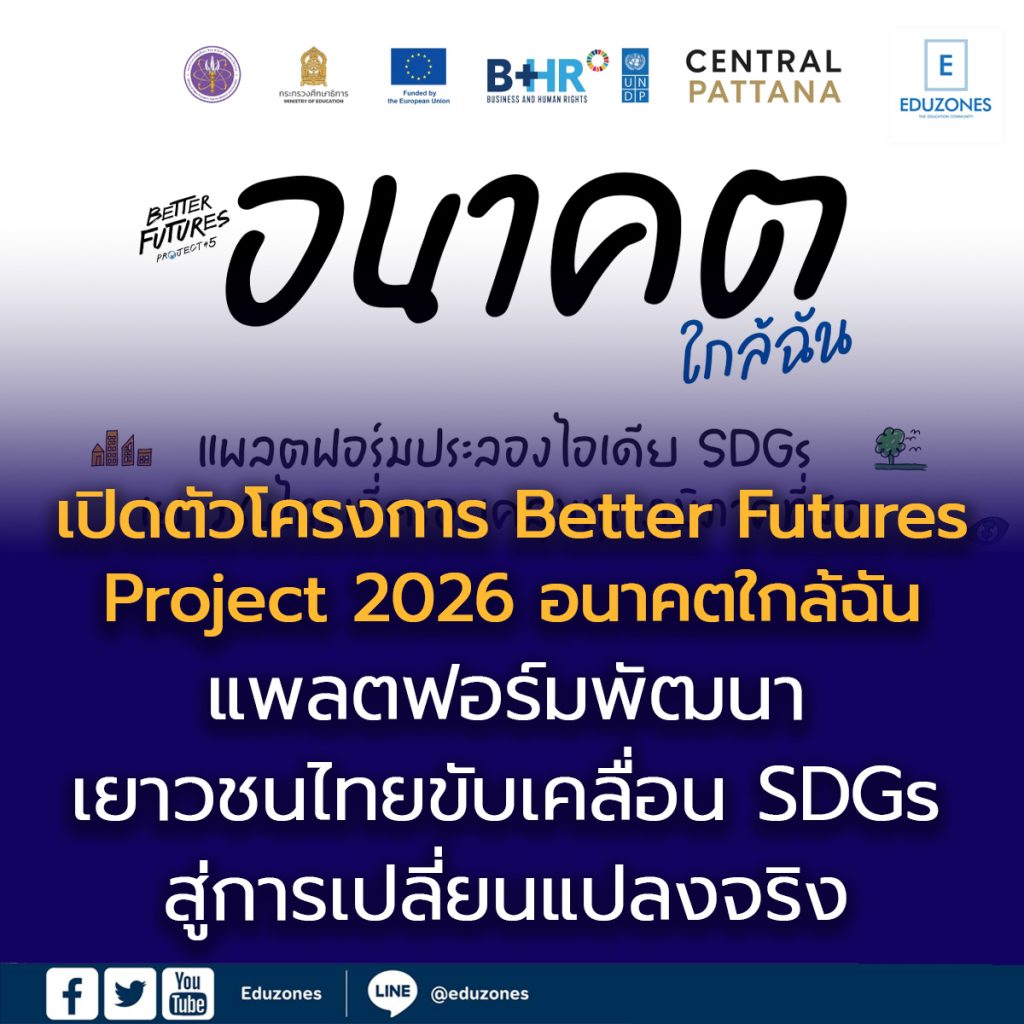 EZ Webmaster April 23, 2026 EZ Webmaster April 23, 2026 เซ็นทรัลพัฒนา ผนึกกำลัง UNDP กระทรวงศึกษาธิการ กระทรวงการอุดมศึกษาฯ และพันธมิตร เปิดตัวโครงการ “Better Futures Project 2026: อนาคตใกล้ฉัน” แพลตฟอร์มพัฒนาเยาวชนไทย ขับเคลื่อน SDGs สู่การเปลี่ยนแปลงจริง กรุงเทพฯ – บริษัท เซ็นทรัลพัฒนา จำกัด (มหาชน) ผู้นำเบอร์หนึ่งอสังหาริมทรัพย์ไทยเพื่อความยั่งยืน ภายใต้วิสัยทัศน์ Imagining better futures for all เชื่อมโยงธุรกิจหลักทั้งศูนย์การค้า, อาคารสำนักงาน, โรงแรม และที่อยู่อาศัยทั่วประเทศ ร่วมกับโครงการพัฒนาแห่งสหประชาชาติ (UNDP) กระทรวงศึกษาธิการ และกระทรวงการอุดมศึกษา วิทยาศาสตร์ วิจัย และนวัตกรรม พร้อมภาคีเครือข่าย เดินหน้าเปิดตัวโครงการ “Better Futures Project 2026: อนาคตใกล้ฉัน” ต่อเนื่องเป็นปีที่ 5 ในฐานะโปรแกรมพัฒนาเยาวชนไทยด้านความยั่งยืนที่ครอบคลุมทุกภูมิภาคที่สุดของประเทศ เพื่อเสริมศักยภาพเยาวชน ในรูปแบบ Youth-led Solutionsตั้งแต่ระดับประถมศึกษาไปจนถึงอุดมศึกษา ให้สามารถพัฒนาไอเดีย นวัตกรรม และแคมเปญที่สร้างการเปลี่ยนแปลงด้านการบริโภค ชุมชน และธุรกิจสู่ความยั่งยืนได้จริง โครงการมุ่งสร้าง “Platform of Opportunity” ที่เปิดพื้นที่ให้เยาวชนได้เรียนรู้–ออกแบบ–ทดลอง–สื่อสาร และต่อยอดสู่การลงมือทำจริง ผ่านโจทย์การพัฒนาที่ยั่งยืน (SDGs) ที่เชื่อมโยงกับบริบทชีวิตประจำวัน ครอบคลุมมิติ Profit, People, และ Planet โดยเน้นการลดช่องว่างระหว่างความตั้งใจและการลงมือทำ (Intention–Action Gap) ผ่านกระบวนการเรียนรู้เชิงปฏิบัติและเครื่องมือด้านการสื่อสารสมัยใหม่ โครงการ “Better Futures Project 2026: อนาคตใกล้ฉัน” ครอบคลุมการพัฒนาเยาวชนในทุกช่วงวัย โดยแบ่งรูปแบบกิจกรรมให้เหมาะสมตามระดับการศึกษา ได้แก่ ระดับประถมศึกษา: เรียนรู้ผ่านกิจกรรมสร้างสรรค์ อาทิ ศิลปะ การแสดง โครงงาน และการสื่อสาร ระดับมัธยมศึกษาตอนต้น: พัฒนาเป็น Clip Creator เพื่อสื่อสารประเด็นสังคมและสิ่งแวดล้อม ระดับมัธยมศึกษาตอนปลาย อาชีวศึกษา และมหาวิทยาลัย: พัฒนา Scalable Solutions และ Impactful Campaigns ที่สามารถต่อยอดเชิงธุรกิจ ชุมชน และสิ่งแวดล้อมได้จริง โดยผู้เข้าร่วมจะได้รับการพัฒนาทักษะแห่งอนาคต (Future Skills) ทั้งด้านการคิดวิเคราะห์ การสื่อสาร และการออกแบบแคมเปญ พร้อมโอกาสในการสร้างผลงานระดับประเทศ เรียนรู้ร่วมกับผู้เชี่ยวชาญ และต่อยอดสู่เครือข่ายองค์กรภาครัฐและเอกชน โครงการ “Better Futures Project #5 อนาคตใกล้ฉัน: แพลตฟอร์มประลองไอเดีย SDGs เยาวชนไทยที่ครอบคลุมทุกภูมิภาคที่สุด” ดำเนินการร่วมกับ โครงการพัฒนาแห่งสหประชาชาติ (UNDP) ผ่านโครงการนักสร้างการเปลี่ยนแปลง เยาวชนและสื่อมวลชนเพื่อธุรกิจที่รับผิดชอบซึ่งได้รับการสนับสนุนจากสหภาพยุ