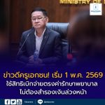 ข่าวดีครูเอกชน! เริ่ม 1 พ.ค. 2569 ใช้สิทธิเบิกจ่ายตรงค่ารักษาพยาบาล ไม่ต้องสำรองเงินล่วงหน้า EZ WebmasterApril 23, 2026 📣 ข่าวดีครูเอกชน! เริ่ม 1 พ.ค. 2569 ใช้สิทธิเบิกจ่ายตรงค่ารักษาพยาบาล ไม่ต้องสำรองเงินล่วงหน้า ครูเอกชนทั่วประเทศเตรียมเฮ หลังมีการประกาศใช้ระบบเบิกจ่ายค่ารักษาพยาบาลรูปแบบใหม่ ที่ช่วยลดภาระค่าใช้จ่ายล่วงหน้า โดยจะเริ่มใช้อย่างเป็นทางการตั้งแต่วันที่ 1 พฤษภาคม 2569 เป็นต้นไป มาตรการดังกล่าวเป็นความร่วมมือระหว่าง กระทรวงศึกษาธิการ,… กสศ. เปิด 5ชุดสวัสดิการพื้นฐาน ช่วยเด็กวิกฤตการศึกษาทั่วประเทศ ไม่ให้หลุดจากระบบ EZ WebmasterApril 23, 2026 กสศ. เปิด 5ชุดสวัสดิการพื้นฐาน ช่วยเด็กวิกฤตการศึกษาทั่วประเทศ ไม่ให้หลุดจากระบบ เดินหน้า Thailand Zero Dropout Plus ช่วยเด็กเป็นรายคน ทันที ตรงจุด สู่ระบบคุ้มครองการศึกษาที่ยั่งยืน วันที่ 23 เมษายน 2569… สสวท. ชวนน้อง ๆ โชว์ไอเดียวาดภาพ “ชีวิตในอวกาศ” เปิดจินตนาการให้ไกลสุดขอบฟ้า ลุ้นของที่ระลึก–รับเกียรติบัตรทุกผลงาน EZ WebmasterApril 23, 2026 สถาบันส่งเสริมการสอนวิทยาศาสตร์และเทคโนโลยี (สสวท.) โดยเฟซบุ๊ก IPST Thailand เชิญชวนน้อง ๆ อายุ 7–12 ปี ร่วมกิจกรรมวาดภาพระบายสี ในหัวข้อ “การใช้ชีวิตในอวกาศและดาวเคราะห์นอกโลก” เปิดพื้นที่ให้น้อง ๆ ถ่ายทอดจินตนาการผ่านการวาดภาพบนกระดาษขนาด A4 ด้วยเทคนิคอิสระ ไม่จำกัดไอเดีย ไม่ว่าจะเป็นเมืองลอยฟ้า บ้านบนดาวอังคาร หรือเพื่อนเอเลี่ยนสุดน่ารัก เขียนชื่อ-นามสกุล และอายุไว้ด้านล่างของผลงานให้เรียบร้อย… สสวท. ประกาศผลการคัดเลือกผู้แทนประเทศไทยไปแข่งขันฟิสิกส์สัประยุทธ์ระดับนานาชาติ (International Young Physicists’ Tournament: IYPT 2026) ครั้งที่ 39 ประจำปี พ.ศ. 2569 EZ WebmasterApril 22, 2026 สถาบันส่งเสริมการสอนวิทยาศาสตร์และเทคโนโลยี (สสวท.) ประกาศผลการคัดเลือกนักเรียนผู้แทนประเทศไทยเข้าร่วมการแข่งขันฟิสิกส์สัประยุทธ์ระดับนานาชาติ International Young Physicists’ Tournament (IYPT 2026) ครั้งที่ 39 ซึ่งจะจัดขึ้น ณ เมืองซูริค สมาพันธรัฐสวิส หลังผ่านกระบวนการคัดเลือกอย่างเข้มข้นในค่ายพัฒนาทักษะการวิจัยด้วยโจทย์ฟิสิกส์สัประยุทธ์ ครั้งที่ 2 ระหว่างวันที่ 3–5 เมษายน 2569 ณ โรงแรมเดอ ไพรม์ รางน้ำ โดยผู้เข้าอบรมได้ฝึกทักษะผ่านกิจกรรม “Physics Fight 2” ที่ดำเนินการแข่งขันเป็นภาษาอังกฤษตลอดช่วงคัดเลือก… กิจกรรม เรียนฟรี! คณะแพทยศาสตร์ มช. เปิดคอร์ส “กายวิภาคศาสตร์มนุษย์พื้นฐาน” เรียนออนไลน์ได้ถึง 31 ก.ค. 2569 EZ WebmasterApril 22, 2026 🧠✨ เรียนฟรี! คณะแพทยศาสตร์ มช. เปิดคอร์ส “กายวิภาคศาสตร์มนุษย์พื้นฐาน” เรียนออนไลน์ได้ถึง 31 ก.ค. 2569 โอกาสดีสำหรับน้อง ๆ นักเรียน นักศึกษา และผู้ที่สนใจสายสุขภาพ ล่าสุด คณะแพทยศาสตร์ มหาวิ