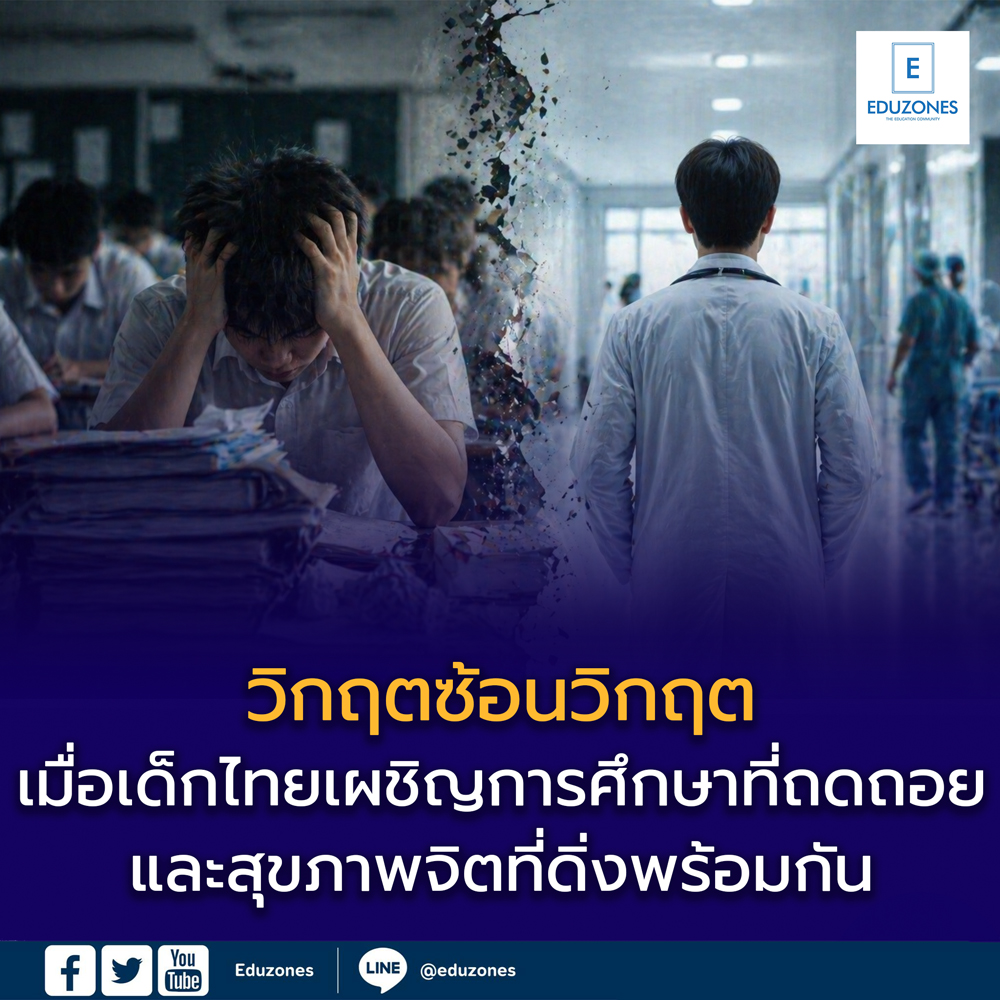 EZ Webmaster April 28, 2026 EZ Webmaster April 28, 2026 วิกฤตซ้อนวิกฤต: เมื่อเยาวชนไทยเผชิญการศึกษาที่ถดถอยและสุขภาพจิตที่ดิ่งพร้อมกัน วิกฤตซ้อนวิกฤต: เมื่อเยาวชนไทยเผชิญการศึกษาที่ถดถอยและสุขภาพจิตที่ดิ่งพร้อมกัน เด็กไทยกำลังเผชิญกับสองวิกฤตพร้อมกัน — วิกฤตที่วัดได้จากข้อสอบ และวิกฤตที่มองไม่เห็นจากภายนอก ในปี 2565 OECD เผยแพร่ผล PISA ที่ชี้ชัดว่าไทยกำลังร่วงลงอย่างต่อเนื่องในทุกทักษะ ขณะเดียวกัน UNICEF รายงานว่าวัยรุ่นไทย 17.6% เคยมีความคิดอยากฆ่าตัวตายในช่วง 12 เดือนที่ผ่านมา ตัวเลขสองชุดนี้ไม่ได้อยู่ในโลกคนละใบ แต่กำลังบอกเรื่องเดียวกัน — ว่ามีบางอย่างผิดพลาดเชิงระบบในชีวิตของเยาวชนไทย และเราต้องพูดถึงมันพร้อมกัน 1. วิกฤตที่หนึ่ง: คะแนน PISA ที่ร่วงไม่หยุด ตัวเลขที่บอกความจริง ผลการทดสอบ PISA 2022 ซึ่งเผยแพร่โดย OECD ในเดือนธันวาคม 2566 ระบุว่า นักเรียนไทยอายุ 15 ปีได้คะแนนคณิตศาสตร์ 394 คะแนน เทียบกับค่าเฉลี่ย OECD ที่ 472 คะแนน ทักษะการอ่านอยู่ที่ 379 คะแนน เทียบกับค่าเฉลี่ย OECD ที่ 476 คะแนน และวิทยาศาสตร์ได้ 409 คะแนน เทียบกับค่าเฉลี่ย OECD ที่ 485 คะแนน ตัวเลขเหล่านี้ไม่ใช่แค่ “ต่ำกว่าค่าเฉลี่ย” แต่สะท้อนถึงแนวโน้มที่น่าตกใจกว่านั้น ในช่วงปี 2555 ถึง 2565 คะแนนของไทยลดลงประมาณ 30 คะแนนในวิชาคณิตศาสตร์และวิทยาศาสตร์ และลดลงถึงประมาณ 60 คะแนนในทักษะการอ่าน ซึ่งตามกรอบการตีความของ OECD เทียบเท่าโดยประมาณกับสิ่งที่นักเรียนอายุ 15 ปีจะเรียนรู้ได้ในราวหนึ่งปีการศึกษา ที่น่าสังเกตเพิ่มเติม เมื่อเทียบกับปี 2555 สัดส่วนนักเรียนที่ทำคะแนนได้ต่ำกว่าระดับขั้นต่ำ (Level 2) เพิ่มขึ้น 19 เปอร์เซ็นต์พอยต์ในวิชาคณิตศาสตร์ 32 เปอร์เซ็นต์พอยต์ในทักษะการอ่าน และ 19 เปอร์เซ็นต์พอยต์ในวิชาวิทยาศาสตร์ นักเรียนไทยที่หาได้ยาก: ผู้ทำคะแนนระดับสูง ในประเทศไทย นักเรียนเกือบไม่มีเลยที่ทำคะแนนได้ในระดับ 5 หรือสูงกว่าในทักษะการอ่าน เทียบกับค่าเฉลี่ย OECD ที่ 7% และในวิชาคณิตศาสตร์ มีเพียงประมาณ 1% ของนักเรียนไทยที่ทำคะแนนในระดับสูง เทียบกับค่าเฉลี่ยโลกที่ 9% ขณะที่นักเรียนไทยเพียง 35% ทำได้ถึง Level 2 หรือสูงกว่าในทักษะการอ่าน เทียบกับค่าเฉลี่ย OECD ที่ 74% Level 2 คือระดับขั้นต่ำที่นักเรียนควรทำได้ในการอ่านจับใจความขั้นพื้นฐาน ตัวเลขนี้หมายความว่าเยาวชนไทยกว่า 65% ยังไม่ถึงเกณฑ์ขั้นต่ำที่ควรจะเป็น แนวโน้มที่น่ากังวล: ลดลงก่อน COVID แล้ว ผล PISA ยืนยันว่าการถดถอยของคะแนนเริ่มขึ้นและดิ่งลงอย่างต่อเนื่องมาตั้งแต่ก่อนเกิดโรคระบาดใหญ่ โดยระบุชัดว่าการลดลงระหว่างปี 2561 และ 2565 เป็นการยืนยันและเร่งรัดแนวโน้มที่เริ่มต้นขึ้นก่อนหน้าน