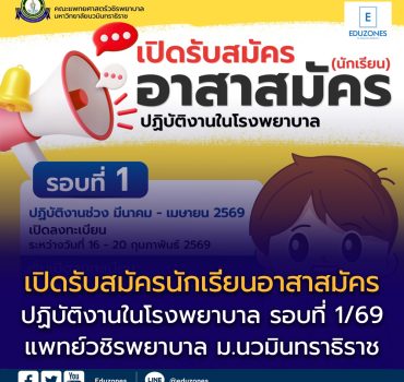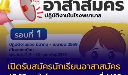 เปิดรับสมัครนักเรียนอาสาสมัครปฏิบัติงานในโรงพยาบาล รอบที่ 1 ปี 2569