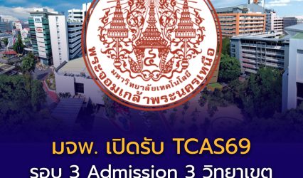 BlogTCASนักเรียนมหาวิทยาลัย มจพ. เปิดรับ TCAS69 รอบ 3 Admission ครบ 3 วิทยาเขต หลายคณะยอดนิยม สมัคร 6–12 พ.ค. นี้ EZ Webmaster April 25, 2026 📣 มจพ. เปิดรับ TCAS69 รอบ 3 Admission ครบ 3 วิทยาเขต หลายคณะยอดนิยม สมัคร 6–12 พ.ค. นี้ มหาวิทยาลัยเทคโนโลยีพระจอมเกล้าพระนครเหนือ…