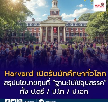 ทุนการศึกษาพระราชทาน ระดับปริญญาโท Skoltech ปีการศึกษา 2569 EZ WebmasterDecember 14, 2025 📣 เปิดรับสมัครแล้ว! ทุนการศึกษาพระราชทาน ระดับปริญญาโท Skoltech ปีการศึกษา 2569 ศึกษาต่อประเทศรัสเซีย (ไม่มีข้อผูกพันการใช้ทุน) อีกหนึ่งโอกาสสำคัญสำหรับผู้ที่สนใจศึกษาต่อระดับ ปริญญาโทด้านวิทยาศาสตร์และวิศวกรรมศาสตร์ ในสถาบันการศึกษาชั้นนำระดับนานาชาติสถาบันวิทยาศาสตร์และเทคโนโลยีสโกลโกโว (Skolkovo Institute of Science and Technology… 🎓🇺🇸 Harvard University เปิดรับนักศึกษาทั่วโลก EZ WebmasterDecember 14, 2025 🎓🇺🇸 Harvard University เปิดรับนักศึกษาทั่วโลก พร้อมนโยบายช่วยเหลือทางการเงินที่แข็งแกร่งระดับโลก Harvard University มหาวิทยาลัยอันดับต้น ๆ ของโลกจากสหรัฐอเมริกา เปิดรับสมัครนักศึกษาใหม่จากทั่วโลก รวมถึงประเทศไทย โดยมีจุดเด่นสำคัญคือ นโยบายช่วยเหลือทางการเงิน (Financial Aid) ที่ครอบคลุมและเป็นธรรมมากที่สุดแห่งหนึ่งของโลก Harvard…
