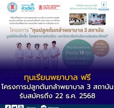 Blogทุนดีดีนักเรียน เปิดรับสมัครแล้ว! ทุนเรียนพยาบาล “ปลูกต้นกล้าพยาบาล 3 สถาบัน” ปีการศึกษา 2569 (รอบที่ 2) EZ Webmaster December 14, 2025 🩺✨ เปิดรับสมัครแล้ว! ทุนเรียนพยาบาล “ปลูกต้นกล้าพยาบาล 3 สถาบัน” ปีการศึกษา 2569 (รอบที่ 2) โอกาสสำคัญสำหรับน้อง ๆ ที่มีความฝันอยากเป็นพยาบาล แต่ขาดแคลนทุนทรัพย์มูลนิธิป่อเต็กตึ๊ง ร่วมกับ โรงพยาบาลหัวเฉียว…