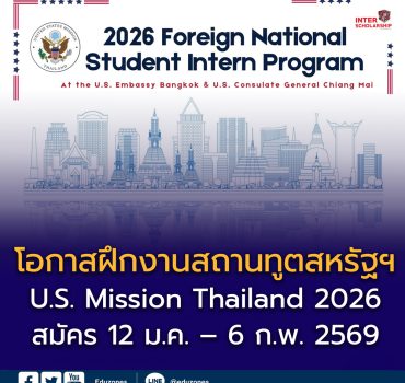 เปิดรับสมัครแล้ว! โครงการฝึกงาน U.S. Mission Thailand 2026 สำหรับนักศึกษา EZ WebmasterDecember 14, 2025 🇺🇸✨ เปิดรับสมัครแล้ว! โครงการฝึกงาน U.S. Mission Thailand 2026 สำหรับนักศึกษา อีกหนึ่งโอกาสสำคัญสำหรับนักศึกษาที่อยากเก็บประสบการณ์ทำงานระดับนานาชาติ!U.S. Mission Thailand เปิดรับสมัคร Foreign National Student Intern Program ประจำปี…