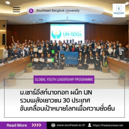 tui sakrapee May 6, 2025 ม.เซาธ์อีสท์บางกอก ผนึก UN รวมพลังเยาวชน 30 ประเทศ ขับเคลื่อนเป้าหมายโลกเพื่อความยั่งยืน tui sakrapee May 6, 2025 มหาวิทยาลัยเซาธ์อีสท์บางกอก ร่วมจัดงาน “Global Youth Leadership Programme: UN-SDGs Bootcamp & Forum 2025″ รวมพลังเยาวชน 30 ประเทศ ขับเคลื่อนเป้าหมายโลกเพื่อความยั่งยืน กรุงเทพมหานคร – มหาวิทยาลัยเซาธ์อีสท์บางกอก (SBU) ร่วมกับตัวแทนองค์กรสหประชาชาติ (UN: United Nation) องค์กรภาคเอกชนไม่แสวงผลกำไร และบริษัทชั้นนำระดับนานาชาติ ร่วมจัดโครงการ “Global Youth Leadership Programme: UN-SDGs Bootcamp… Continue Reading