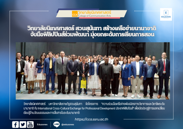 tui sakrapee October 16, 2025 วิทยาลัยนิเทศศาสตร์ สวนสุนันทา สร้างเครือข่ายความร่วมมือนานาชาติ จับมือองค์กรจากฟิลิปปินส์ร่วมพัฒนาและยกระดับการจัดการเรียนการสอน tui sakrapee October 16, 2025 วิทยาลัยนิเทศศาสตร์ มหาวิทยาลัยราชภัฏสวนสุนันทา สร้างเครือข่ายความร่วมมือนานาชาติ จับมือองค์กรจากฟิลิปปินส์ ร่วมพัฒนาและยกระดับการจัดการเรียนการสอนทั้งในเชิงวิชาการและวิชาชีพ วิทยาลัยนิเทศศาสตร์ มหาวิทยาลัยราชภัฏสวนสุนันทา จัดโครงการ “ความร่วมมือเครือข่ายพันธมิตรทางวิชาการและวิชาชีพระดับนานาชาติ กับ International Cross-Cultural Exchange for Professional Development ประเทศฟิลิปปินส์” ในวันที่ 14 ตุลาคม 2568 ณ อาคาร CCA MEDIA CENTER วิทยาลัยนิเทศศาสตร์ มหาวิทยาลัยราชภัฏสวนสุนันทา วิทยาเขตนครปฐม เพื่อเปิดประตูสู่การแลกเปลี่ยนเรียนรู้ด้านวัฒนธรรมและการสื่อสารในระดับนานาชาติ กิจกรรมภายในงานพิธีเปิดโครงการ โดย… Continue Reading