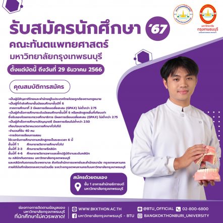 tui sakrapee December 4, 2023 มหาวิทยาลัยกรุงเทพธนบุรี เปิดรับตรง เรียนต่อทันตะ วันนี้ถึง 29 ธ.ค.นี้ tui sakrapee December 4, 2023 คณะทันตแพทยศาสตร์ มหาวิทยาลัยกรุงเทพธนบุรี ได้เปิดรับสมัครบุคคลเข้าศึกษาในหลักสูตรทันตแพทยศาสตรบัณฑิต ปี การศึกษา 2567 (รับตรง) กำหนดการรับสมัครและสอบคัดเลือก รับสมัครตั้งแต่วันนี้ จนถึงวันศุกร์ที่ 29 ธันวาคม พ.ศ. 2566 สมัครด้วยตนเองที่ฝ่ายประชาสัมพันธ์และรับสมัครนักศึกษามหาวิทยาลัยกรุงเทพธนบุรี หรือกรอกใบสมัครผ่านทางเว็บไซต์ http://admission.bkkthon.ac.th การสอบสัมภาษณ์และการสอบข้อเขียน วันอาทิตย์ที่ 7 มกราคม พ.ศ. 2567 สอบข้อเขียน เวลา 09.00 – 11.00 น. สอบสัมภาษณ์ เวลา 13.00… Continue Reading