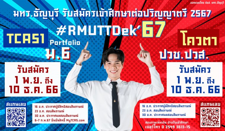 tui sakrapee October 7, 2023 เตรียมพร้อม! มทร.ธัญบุรี เปิดรับ TCAS1 รอบ Portfolio เริ่ม 1 พ.ย.นี้ tui sakrapee October 7, 2023 มหาวิทยาลัยเทคโนโลยีราชมงคลธัญบุรี เปิดรับสมัครนักศึกษาใหม่ เข้าศึกษาต่อระดับปริญญาตรี ปีการศึกษา2567 ผู้สำเร็จการศึกษา มัธยมศึกษาปีที่6 ผ่านระบบ TCAS1 รอบ Portfolio รับสมัคร 1 พ.ย. ถึง 10 ธ.ค. 66 16 ธ.ค. ประกาศผู้มีสิทธิสอบสัมภาษณ์ 23 ธ.ค. สอบสัมภาษณ์ 30 ธ.ค. ประกาศผลสอบสัมภาษณ์ 6-7 ก.พ.67 ยืนยันสิทธิ์ MyTCAS.com ผู้สำเร็จการศึกษา ปวช.… Continue Reading