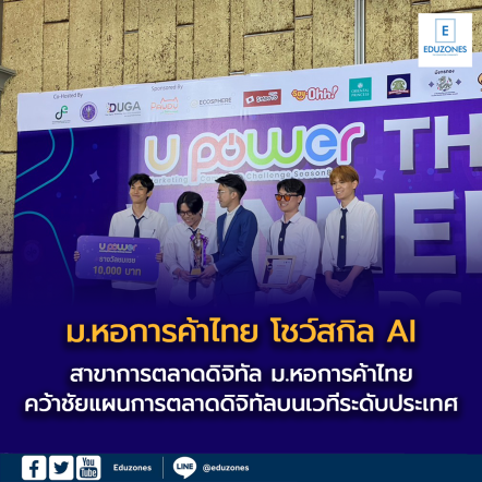 EZ Webmaster December 18, 2025 สาขาการตลาดดิจิทัล ม.หอการค้าไทย โชว์สกิล AI คว้าชัยแผนการตลาดดิจิทัลบนเวทีระดับประเทศ EZ Webmaster December 18, 2025 สาขาการตลาดดิจิทัล ม.หอการค้าไทย โชว์สกิล AI คว้าชัยแผนการตลาดดิจิทัลบนเวทีระดับประเทศ สาขาการตลาดดิจิทัล คณะบริหารธุรกิจ มหาวิทยาลัยหอการค้าไทย ของแสดงความยินดีกับนักศึกษาชั้นปีที่ 2 ทีม “เด็กก็ไม่มีตังค์” ได้รับรางวัลชมเชย การประกวดแข่งขันเขียนแผนการตลาดดิจิทัลด้วย Generative Al ในรายการแข่งขัน U Power Marketing Campaign Challenge Season 8 ของแบรนด์ ENTRÉE ประจำปี พ.ศ. 2568 โดยมีนักศึกษาเข้าร่วมโครงการการแข่งขัน ดังนี้ นาย ศุภกฤต… Continue Reading