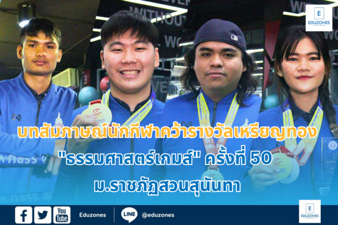 EZ Webmaster January 23, 2025 บทสัมภาษณ์นักกีฬาคว้ารางวัลเหรียญทอง “ธรรมศาสตร์เกมส์” ครั้งที่ 50 ม.ราชภัฏสวนสุนันทา EZ Webmaster January 23, 2025 บทสัมภาษณ์นักกีฬาคว้ารางวัลเหรียญทอง “ธรรมศาสตร์เกมส์” ครั้งที่ 50 ม.ราชภัฏสวนสุนันทา ในวันที่ 21 มกราคม 2568 ที่ผ่านมา Eduzones ได้มีโอกาสสัมภาษณ์ผู้ฝึกสอน และนักกีฬาของมหาวิทยาลัยราชภัฏสวนสุนันทา ที่สามารถคว้ารางวัลเหรียญทอง ในการแข่งขัน “ธรรมศาสตร์เกมส์” ครั้งที่ 50 อาจารย์วิษณุ สมัญญา (ผู้ฝึกสอนนักกีฬามวยสากล) กล่าวว่า “อดีตตัวผมผันตัวจากการเป็นนักกีฬามวยสากลของ ม. ศรีนครินทรวิโรฒ มาทำงานเป็นผู้ฝึกสอนที่นี่ เพื่อปั้นนักมวยให้มีทักษะและประสบการณ์ ผมมีประสบการณ์การฝึกสอนตั้งแต่เริ่มเข้ามาที่ ม.ราชภัฏสวนสุนันทา รวมราว 14 ปี ผมภูมิใจกับนักกีฬาทุกคนที่ได้ฝึกสอน… Continue Reading
