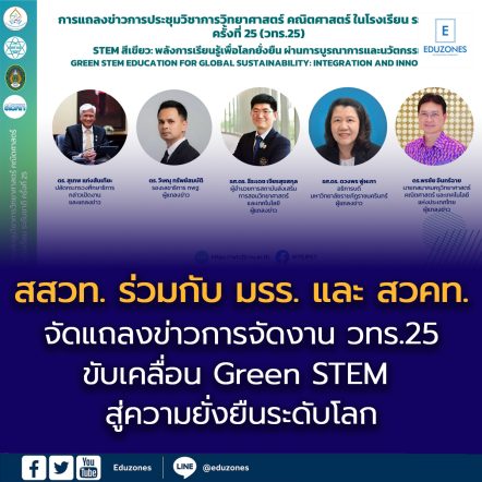 EZ Webmaster March 2, 2026 สสวท. ร่วมกับ มรร. และ สวคท. จัดแถลงข่าวการจัดงาน วทร.25 ขับเคลื่อน Green STEM สู่ความยั่งยืนระดับโลก EZ Webmaster March 2, 2026 ดร.สุเทพ แก่งสันเทียะ ปลัดกระทรวงศึกษาธิการ ดร.วิษณุ ทรัพย์สมบัติ รองเลขาธิการคณะกรรมการการศึกษาขั้นพื้นฐาน (กพฐ.) รองศาสตราจารย์ ดร.ธีระเดช เจียรสุขสกุล ผู้อำนวยการสถาบันส่งเสริมการสอนวิทยาศาสตร์และเทคโนโลยี (สสวท.) รองศาสตราจารย์ ดร.ดวงพร ภู่ผะกา อธิการบดีมหาวิทยาลัยราชภัฏราชนครินทร์ (มรร.) และ ดร.พรชัย อินทร์ฉาย นายกสมาคมครูวิทยาศาสตร์ คณิตศาสตร์และเทคโนโลยีแห่งประเทศไทย (สวคท.) ร่วมแถลงข่าวประกาศความพร้อมการจัดงาน “การประชุมวิชาการวิทยาศาสตร์ คณิตศาสตร์ในโรงเรียน ระดับชาติ ครั้งที่ 25 (วทร.25)” ในวันที่ 25 กุมภาพันธ์ 2569 ณ ห้องประชุมศาสตราจารย์ หม่อมหลวงปิ่น มาลากุล กระทรวงศึกษาธิการ การประชุมวิชาการดังกล่าวมีกำหนดจัดขึ้นระหว่างวันที่ 24–26 กรกฎาคม 2569 ณ มหาวิทยาลัยราชภัฏราชนครินทร์ จ.ฉะเชิงเทรา ภายใต้แนวคิด “Green STEM Education for Global Sustainability: Integration… Continue Reading