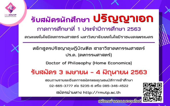 EZ Webmaster February 10, 2021 วิทยาลัยการบริหารแห่งรัฐ มทร.พระนคร เปิดรับสมัคร ปริญญาเอก หลักสูตรการบริหารแห่งรัฐ มุ่งปั้นผู้นำประเทศ EZ Webmaster February 10, 2021 วิทยาลัยการบริหารแห่งรัฐ มหาวิทยาลัยเทคโนโลยีราชมงคลพระนคร เปิดรับสมัครนักศึกษาหลักสูตรปรัชญาดุษฎีบัณฑิต สาขาวิชาการบริหารแห่งรัฐ Ph.D. (State Administration) ครั้งแรกของหลักสูตรการบริหารแห่งรัฐในประเทศไทย ตอบโจทย์ภาวะขาดแคลนผู้นำพร้อมใช้งาน เหมาะสำหรับผู้บริหารระดับกลางถึงสูง ให้มีทักษะในการทำงานวิจัยระดับชาติและนานาชาติ สามารถประกอบอาชีพผู้บริหารระดับสูงในหน่วยงานรัฐและเอกชน หรือเป็นที่ปรึกษาระดับสูงในการแก้ปัญหาให้หน่วยงาน ตลอดจนเป็นอาจารย์ในสถาบันอุดมศึกษา คุณสมบัติผู้สมัคร เป็นผู้สำเร็จการศึกษาระดับปริญญาตรี หรือปริญญาโททุกสาขาวิชา เปิดรับสมัครตั้งแต่บัดนี้เป็นต้นไป เปิดภาคเรียนในเดือนมิถุนายน 2564 (เปิดสอนวิชาพื้นฐานสำหรับผู้ไม่มีพื้นฐานในเดือนเมษายน) เรียนนอกเวลาราชการ ผู้สนใจสอบถามรายละเอียดเพิ่มได้ที่ อาจารย์อิทธิศักดิ์ พลอยศิริชล โทรศัพท์ 061 994 9266 หรือคุณจีรวัสส์ แสนสุภาพ โทรศัพท์… Continue Reading